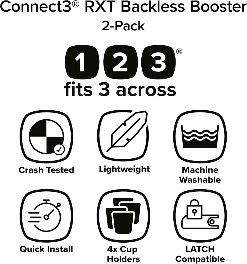 يناسب 3-Across - تصميمنا النحيف الشهير الآن في معزز بعرض أقل من 17 بوصة دون التضحية بمساحة المقعد الداخلي. يتميز Connect3 بمحيط مقعد مبتكر حول أدلة حزام الخصر EasyPath للوصول إلى إبزيم EasyReach.