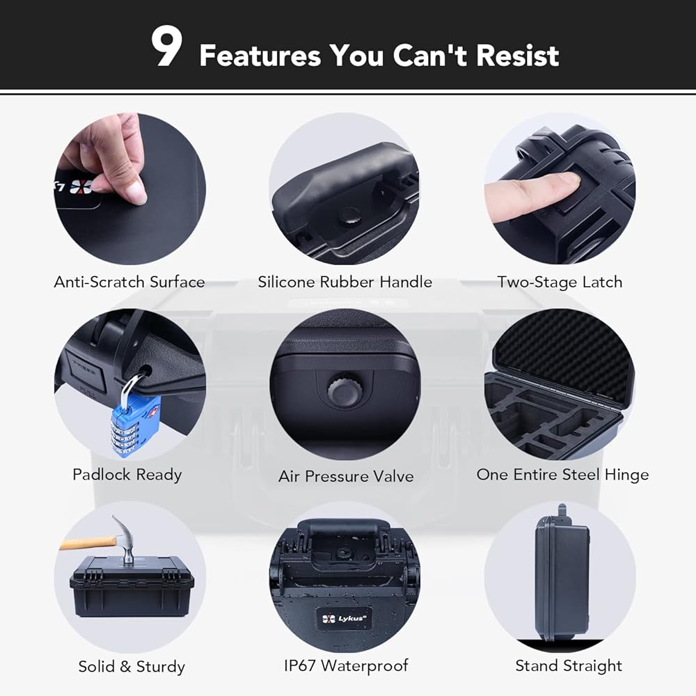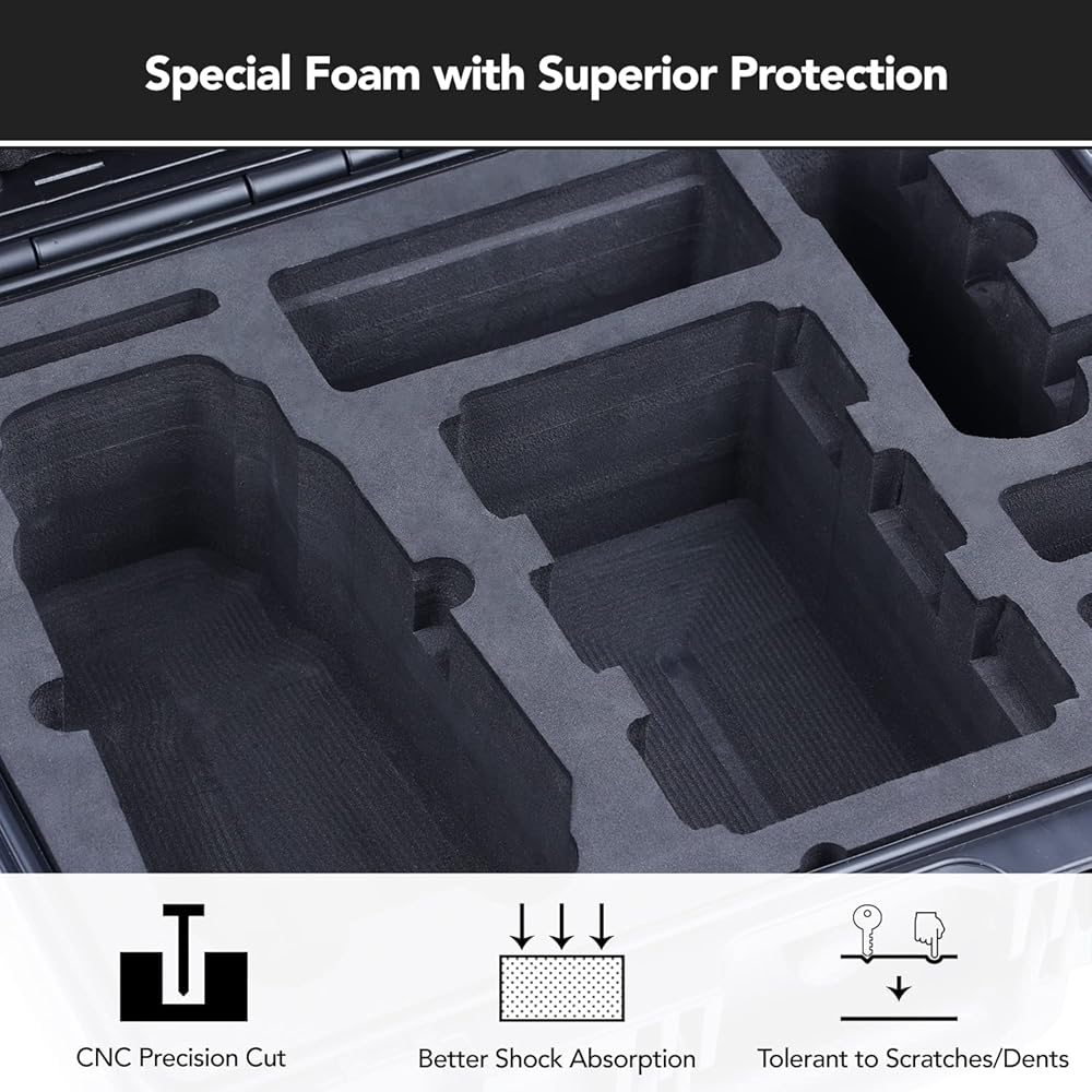 الحماية الداخلية - الرغوة المقطوعة بدقة باستخدام الحاسب الآلي مصنوعة من نوع خاص من أسيتات إيثيلين-فاينيل (EVA)، وهو أكثر مرونة من أسيتات إيثيلين-فاينيل التقليدية لتوفير امتصاص أفضل للضغط والصدمات.