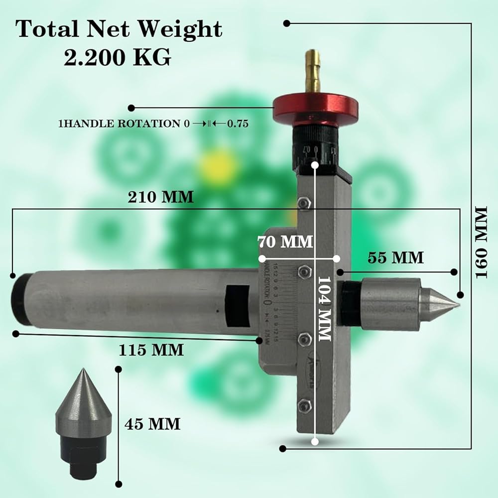 Double-Bearing Revolving Live Center ⚙️: Features a double-bearing live center with a hardened point for unmatched durability and performance.