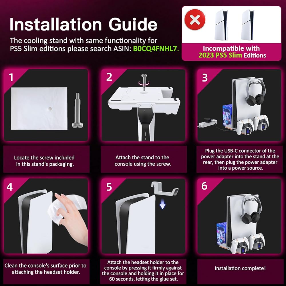 【مستقر وسهل الاستخدام】قم بتوصيل وحدة التحكم PlayStation 5 بإحكام بحامل التبريد باستخدام المسمار المرفق لمنع ضرب وحدة التحكم عن طريق الخطأ.