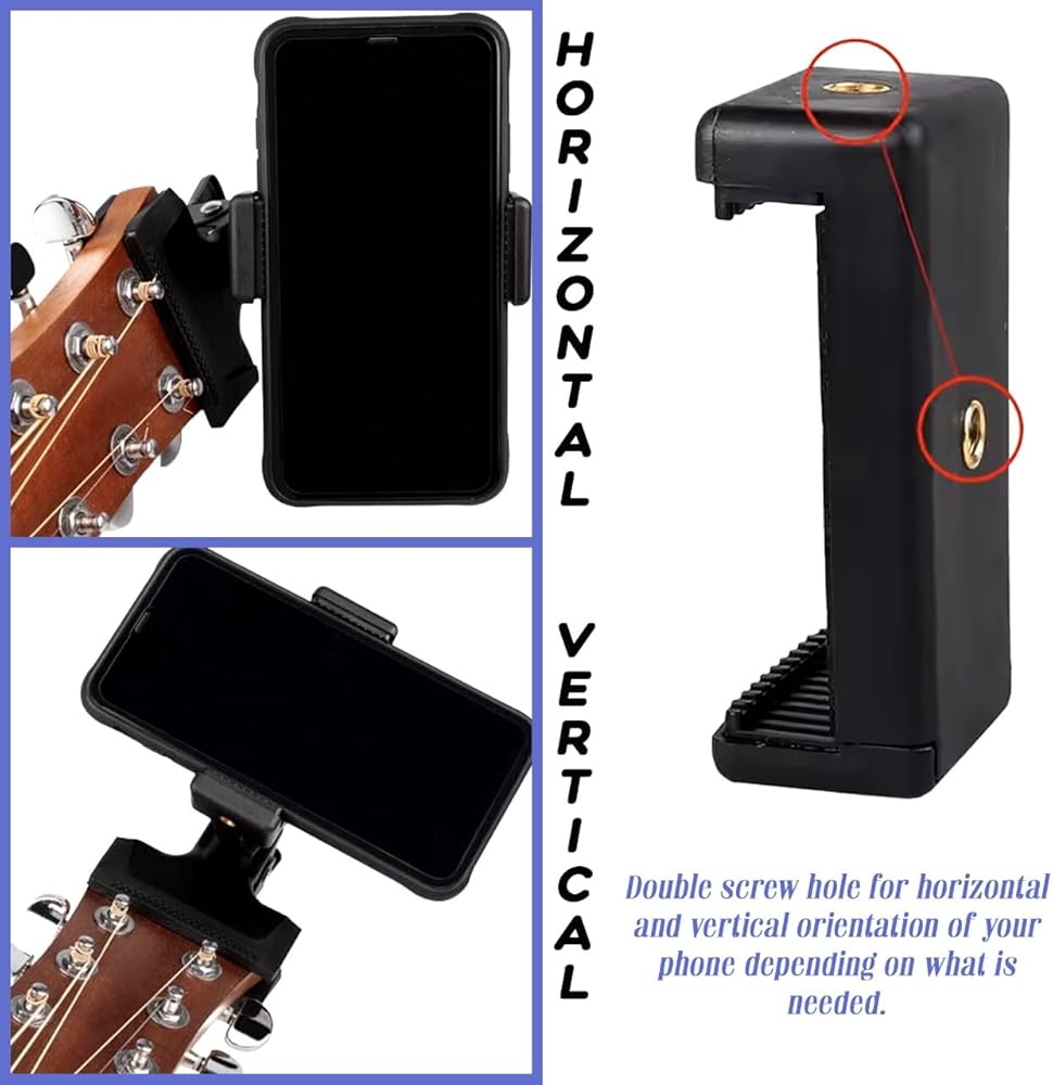 Ideal for both practice and performance, this guitar phone holder mount features a 360-degree rotation, so you can adjust the angle to find the perfect viewing position. This feature makes it a fantastic phone holder for guitar playing, especially for musicians who rely on digital resources for their setlists, tuning, or lyrics.