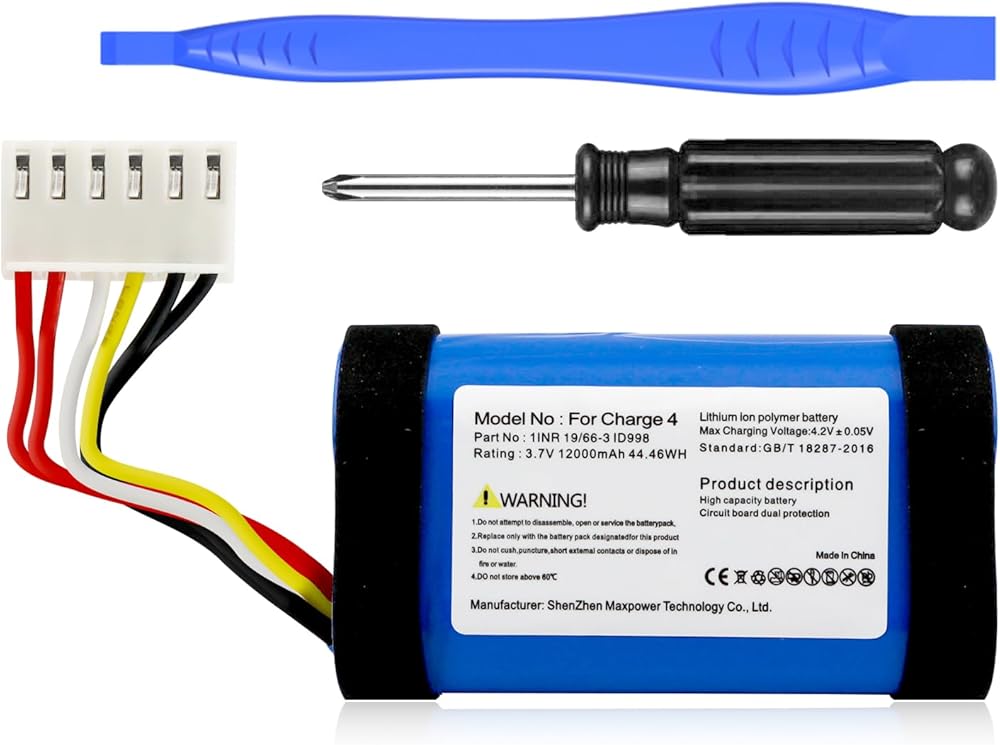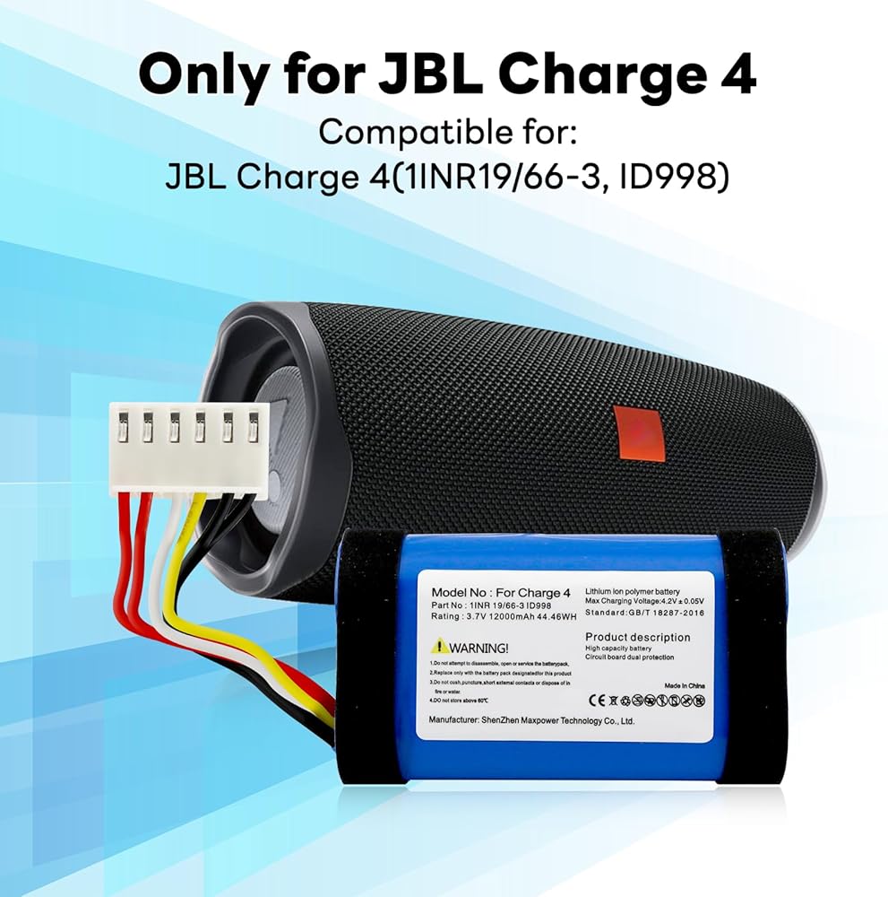 بطارية بديلة 12000 مللي أمبير في الساعة لـ JBL Charge 4، Charge 4BLK، Charge 4J، CHARGE4BLUAM، تناسب الجزء رقم 1INR19/66-3،ID998، SUN-INTE-118، IY1068، بطارية عالية السعة مع أداة إصلاح (ليست للشحن 4Q)