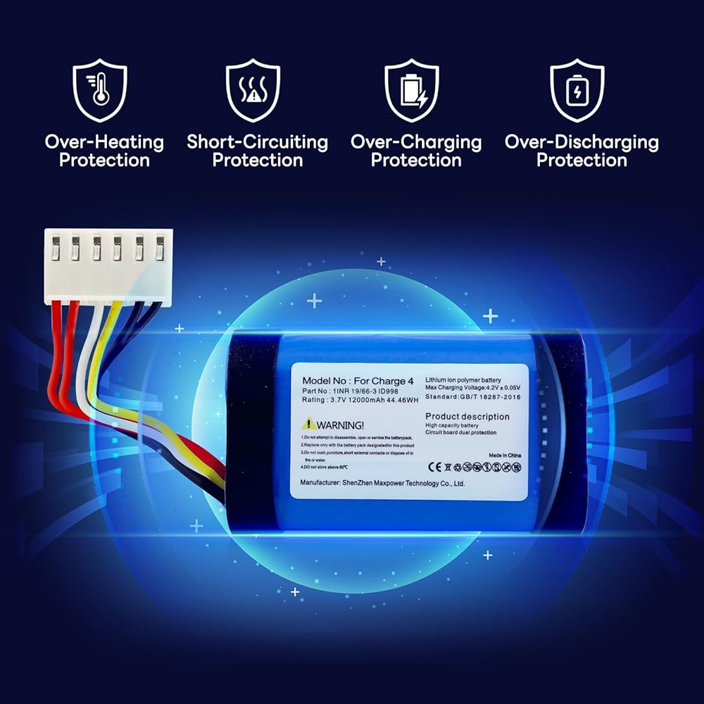 ✔️【رقاقة ترقية】ترقية جديدة لبطارية JBL Charge 4 مصنوعة من بطاريات عالية الجودة من الفئة A وحاصلة على شهادات CE وFCC وUL وPSE وROHS. رقاقة مدمجة لمنع الشحن الزائد والتفريغ الزائد والسخونة الزائدة.