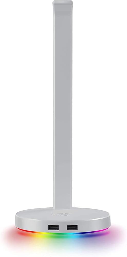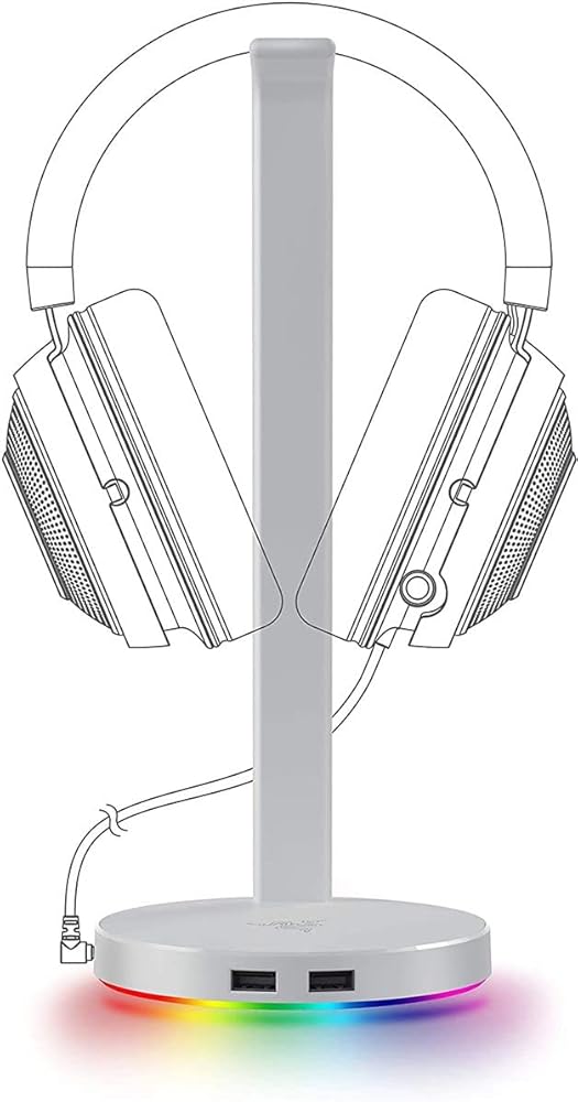 حامل حامل سماعة الرأس Base Station V2 Chroma: إضاءة Chroma RGB - حامل أطول وحافة مضادة للانزلاق - منافذ شحن USB - قاعدة مطاطية مضادة للانزلاق - منفذ 3.5 مم + DAC مدمج - أبيض زئبقي