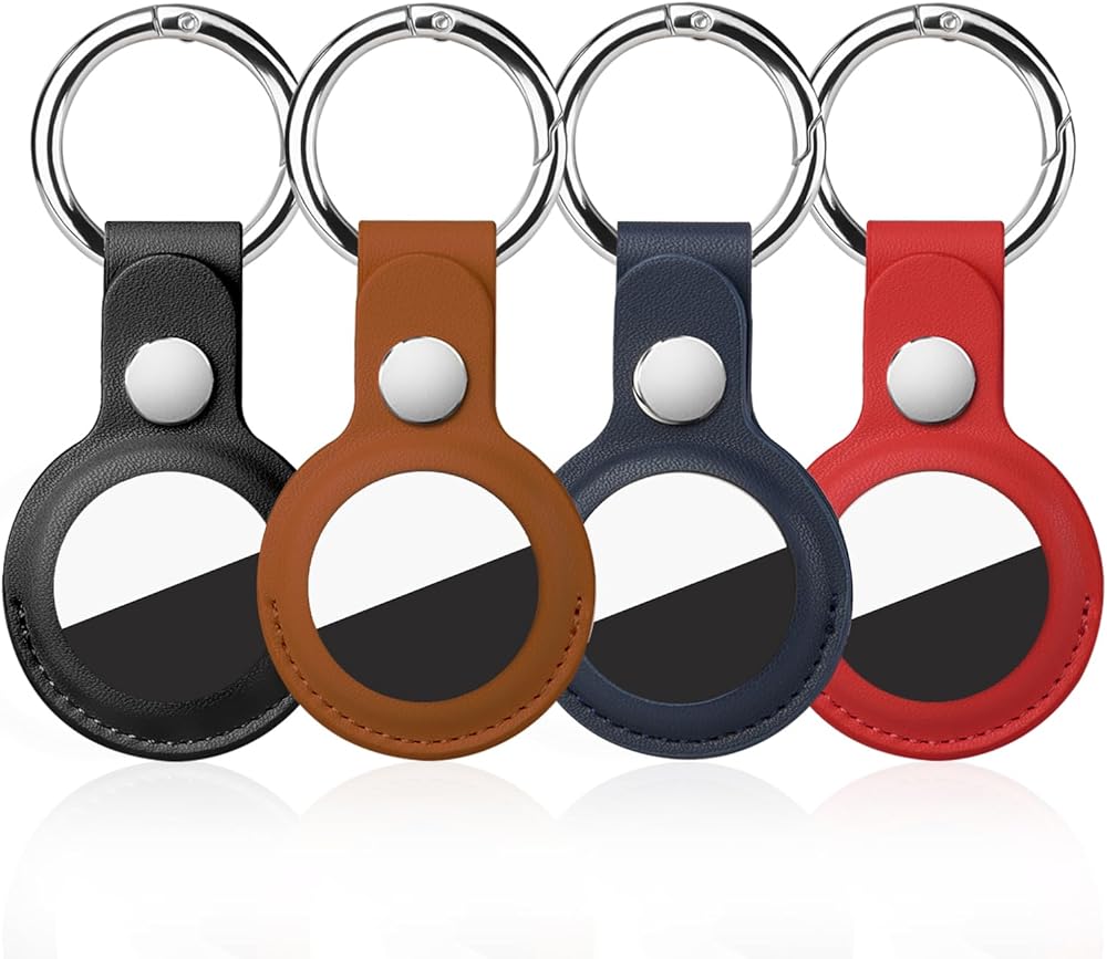 4 عبوات من حامل بطاقات الهواء لسلسلة مفاتيح Apple Air Tag، حافظة بطاقات هوائية من جلد البولي يوريثان، زميل هوائي للأمتعة، يأتي مع حلقة مفاتيح معدنية للأمتعة والمفاتيح والحيوانات الأليفة وحقيبة الأطفال
