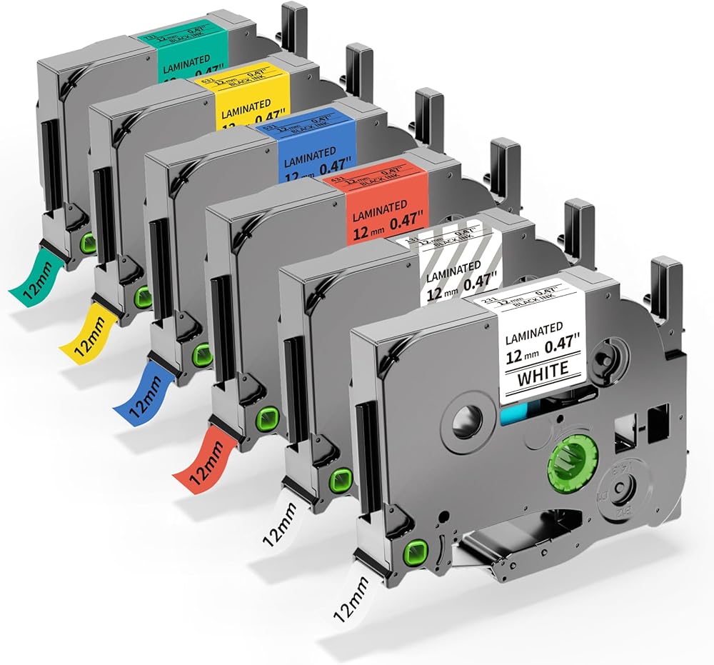 [يستخدم على نطاق واسع] شريط صانع الملصقات 12 مم × 8 مم متوافق مع شريط Brother P Touch tz 12 مم 0.47 لون مصفح يستخدم على نطاق واسع في العمل والحياة، مثل المجلدات وأزرار الإضاءة في المكاتب، والوسائل التعليمية والقرطاسية في المدارس، والزجاجات في المطابخ، والخزائن في المخازن، وأسلاك المعدات في غرف الموسيقى، وأواني الزهور، وما إلى ذلك