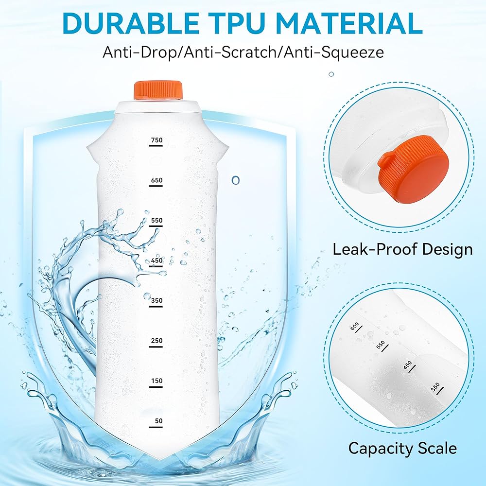 Our portable TPU soft flask is compatible with Sawyer Squeeze Mini Micro Water Filtration System, allowing you access to clean, filtered water wherever you go. This collapsible 750ml bottle is designed to fit seamlessly into backpacks, providing an ideal solution for hikers, travelers, and anyone who values lightweight hydration options. Made from high quality TPU material, it offers increased durability and flexibility compared to traditional PE materials, making it a reliable outdoor hydration choice!
