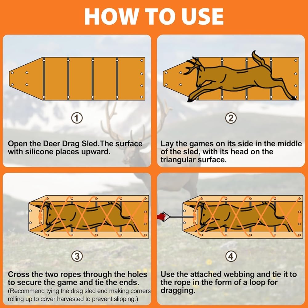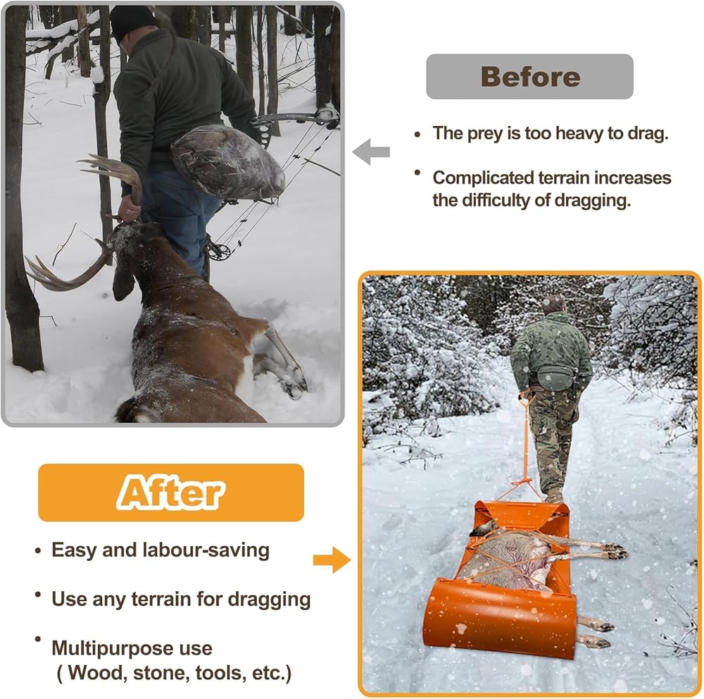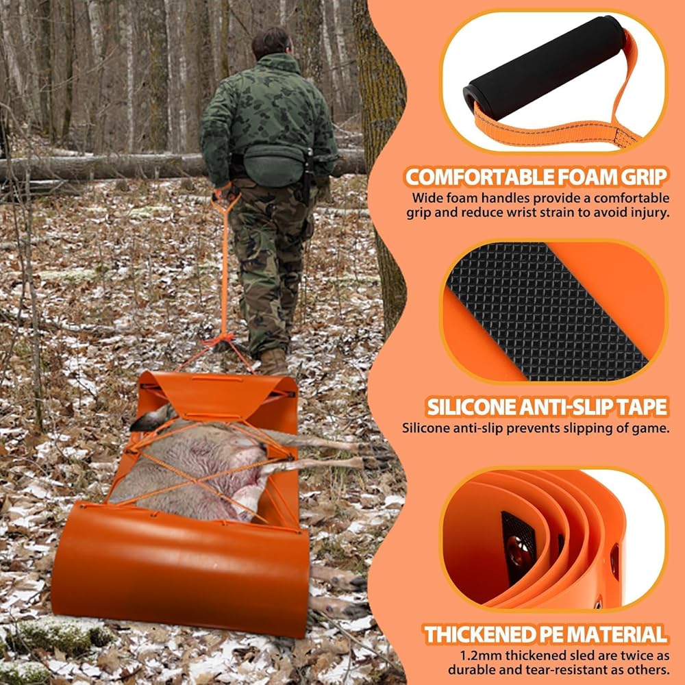 • Ultimate Deer Drag Sled: تم تصميم مزلجة سحب الغزلان الخاصة بنا للصيادين الذين يحتاجون إلى حل موثوق وسهل الاستخدام لنقل اللعبة عبر التضاريس الوعرة. تنزلق بسهولة على العشب والطين والثلج والجليد، مما يجعل كل عملية صيد أكثر سلاسة وكفاءة