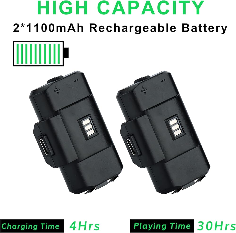 • 【Long-Lasting Battery Packs】 Each Ni-MH battery is 1100mAh, provides the maximum amount of energy for original Xbox Series X/S controller, and the batteries provide a total of 30 to 33 hours for playing when fully charged.