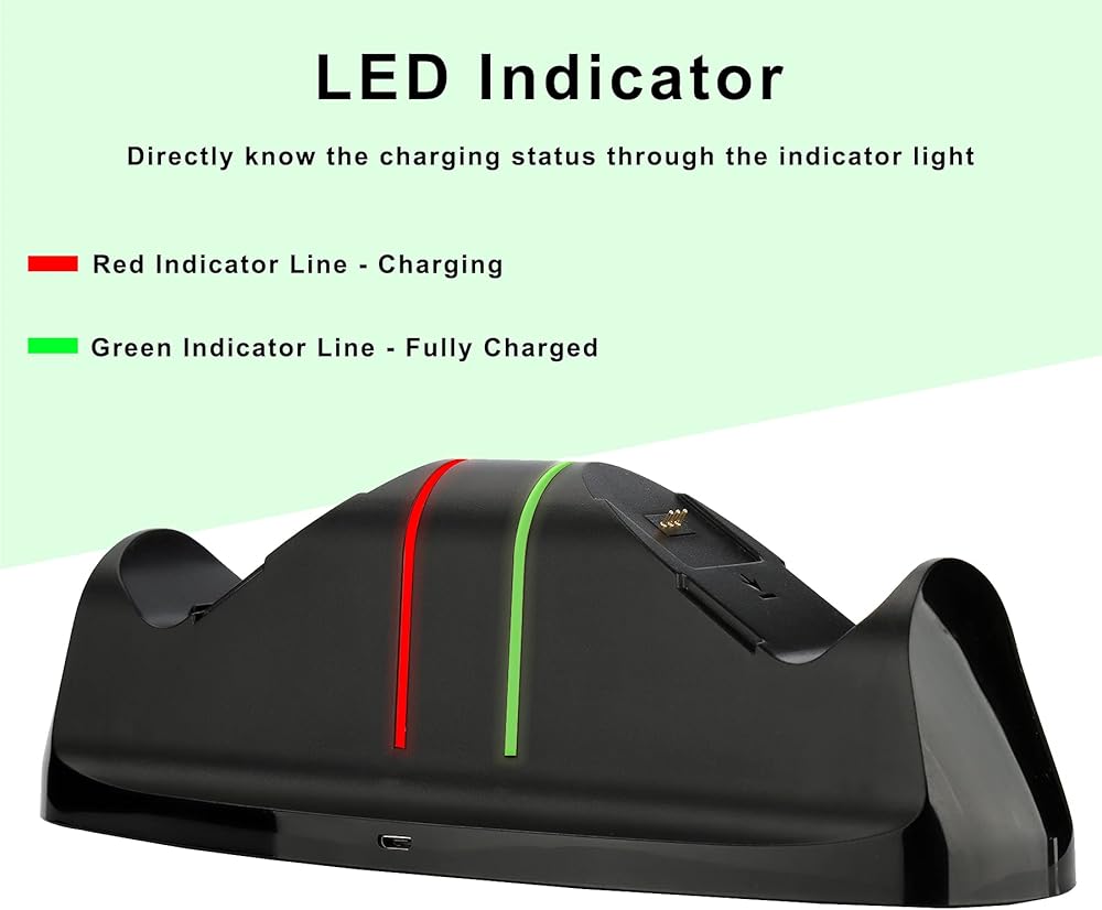 LED Indicator: Both the dual charging station and the batteries are built with LED indicator to easily identify if it is fully charged or not. (Red indicator-Charging, Green indicator-Full charged)