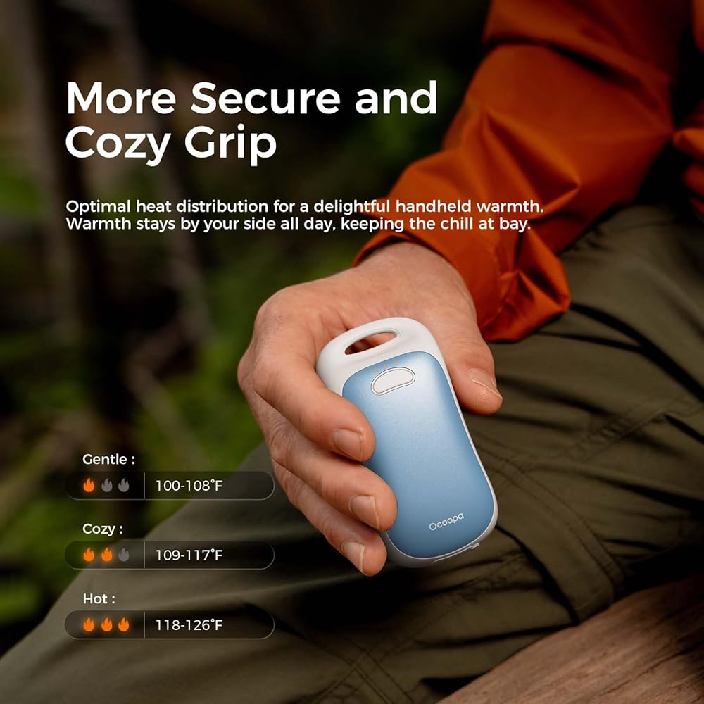 • حرارة فورية آمنة: استمتع بالدفء السريع والآمن مع 3 مستويات حرارة تصل إلى 125 درجة فهرنهايت؛ معتمد من UL للسلامة (E535516) من UL LLC، هذا الدفء اليدوي القابل لإعادة الشحن هو رفيقك الموثوق به من أجل الراحة والدفء.