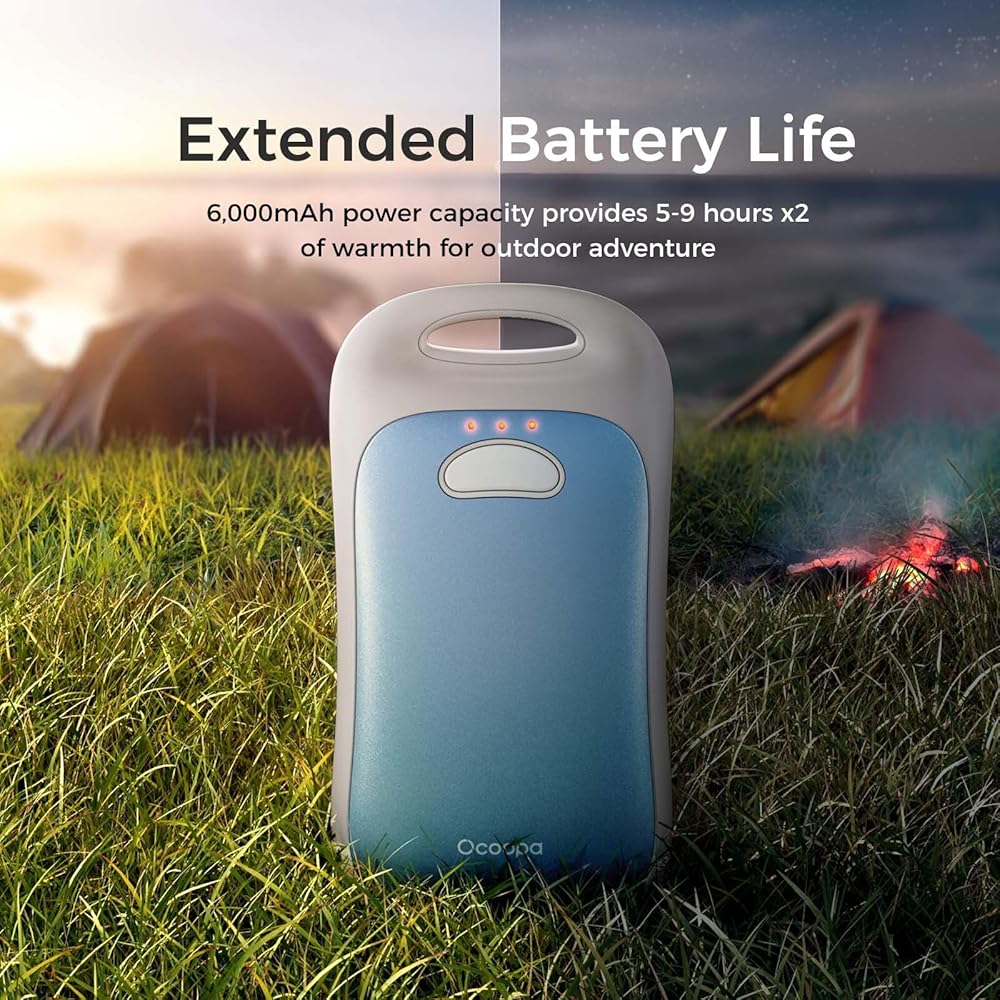 • دفء طويل الأمد: ما يصل إلى 9 ساعات*2 من الحرارة المستمرة مع بطارية 6000 مللي أمبير في الساعة؛ ضروري للأيام الخارجية الطويلة، جهاز تدفئة اليد الإلكتروني هذا يبقيك مرتاحًا