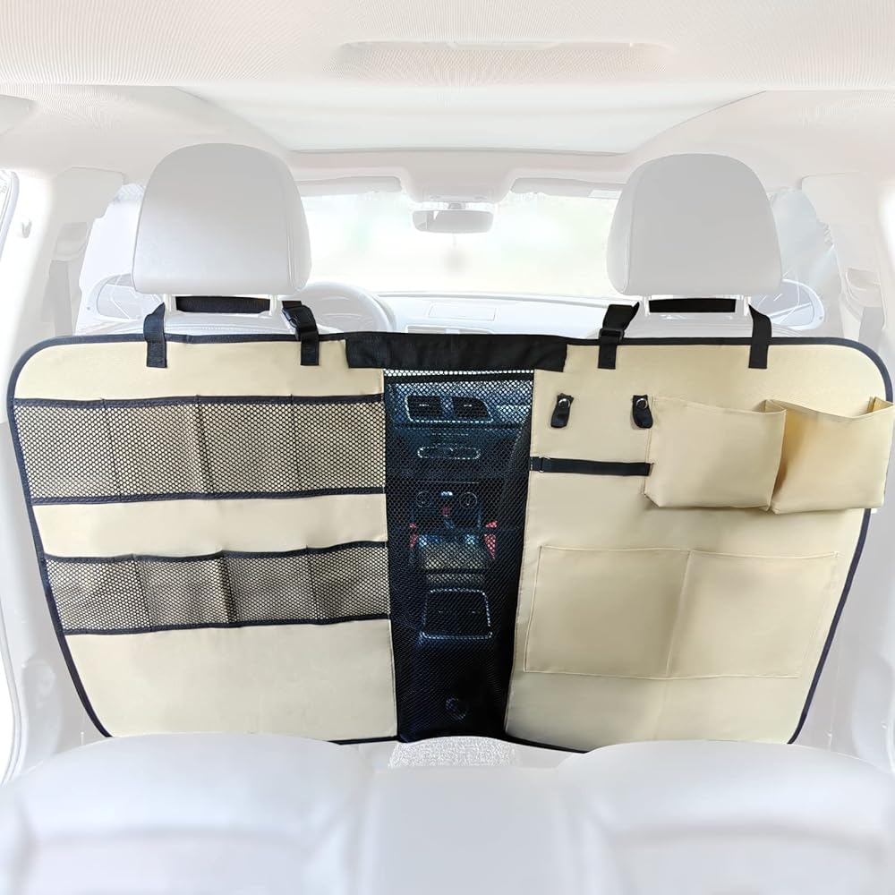 Excellent Material and Craft: Made of reinforced and tough oxford fabrics, hard plastic inserts and intensive nylon mesh window for long duralibity, better shape, good ventilation and visibility and has nice and sturdy sewing stitches, this car dog barrier stops pet claws getting caught and make it scratchproof and wear resistant to your pets claws as well as easy to wipe clean, won't get sagged over years.