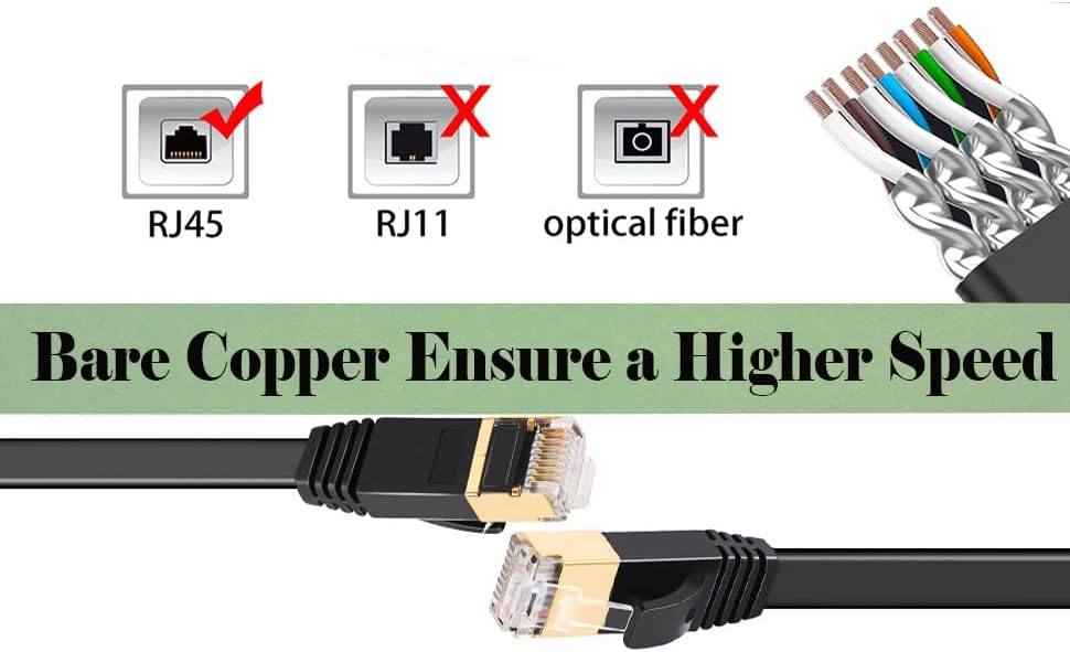 سلك نحاسي عاري: كابل إيثرنت سريع UTP، كابل إيثرنت ألعاب rj45 عالي الجودة، موصلات بطول 50 قدمًا توفر اتصالاً آمنًا، والحد الأدنى من الضوضاء والتداخل الأقل