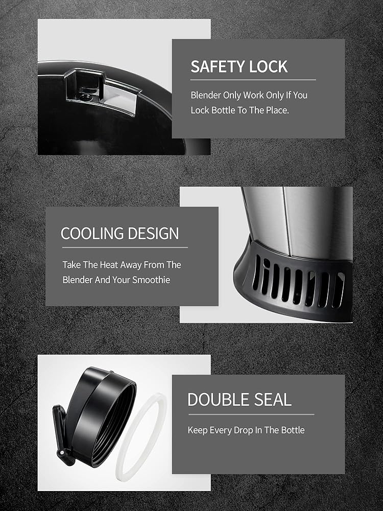 لمسة واحدة للمزج - من السهل جدًا استخدام الخلاط الشخصي، فقط اضغط مع الاستمرار على الزر لبدء المزج أو التأريض، ثم حرره للتوقف. استمتع بالمشروبات اللذيذة والصحية محلية الصنع كل يوم.