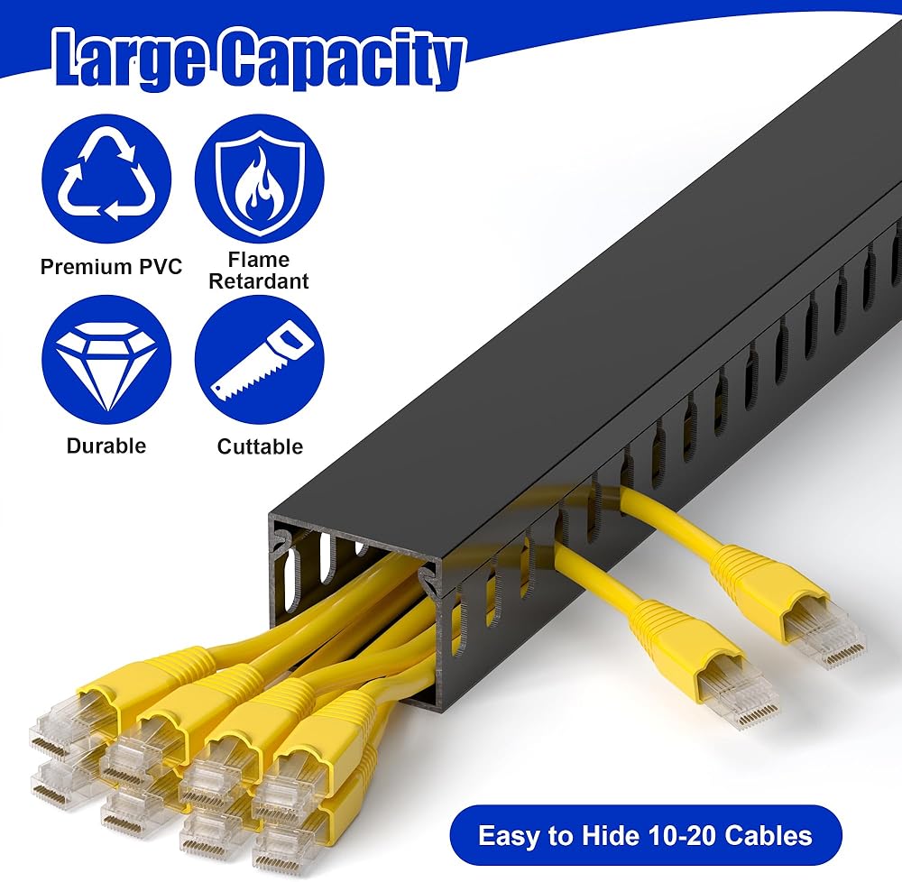 • يمكنك إدارة الشبكة وكابلات البيانات بسهولة: مصممة بفتحات متوازية على كلا الجانبين، مما يجعلها ملائمة لك للتجميع والأسلاك. يمكن أن تستوعب سعتها الكبيرة H2 بوصة × W2 ما يصل إلى 40 كابلًا (حسب سمكها). توفر مجموعة مسارات الكابلات هذه مسارين لإدارة الكابلات بطول 39 بوصة (إجمالي 78 بوصة)، مما يقلل من متاعب الربط
