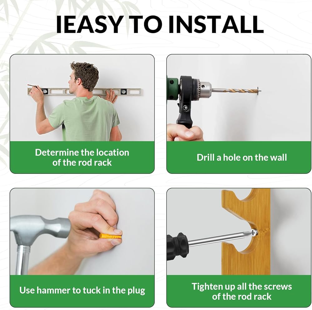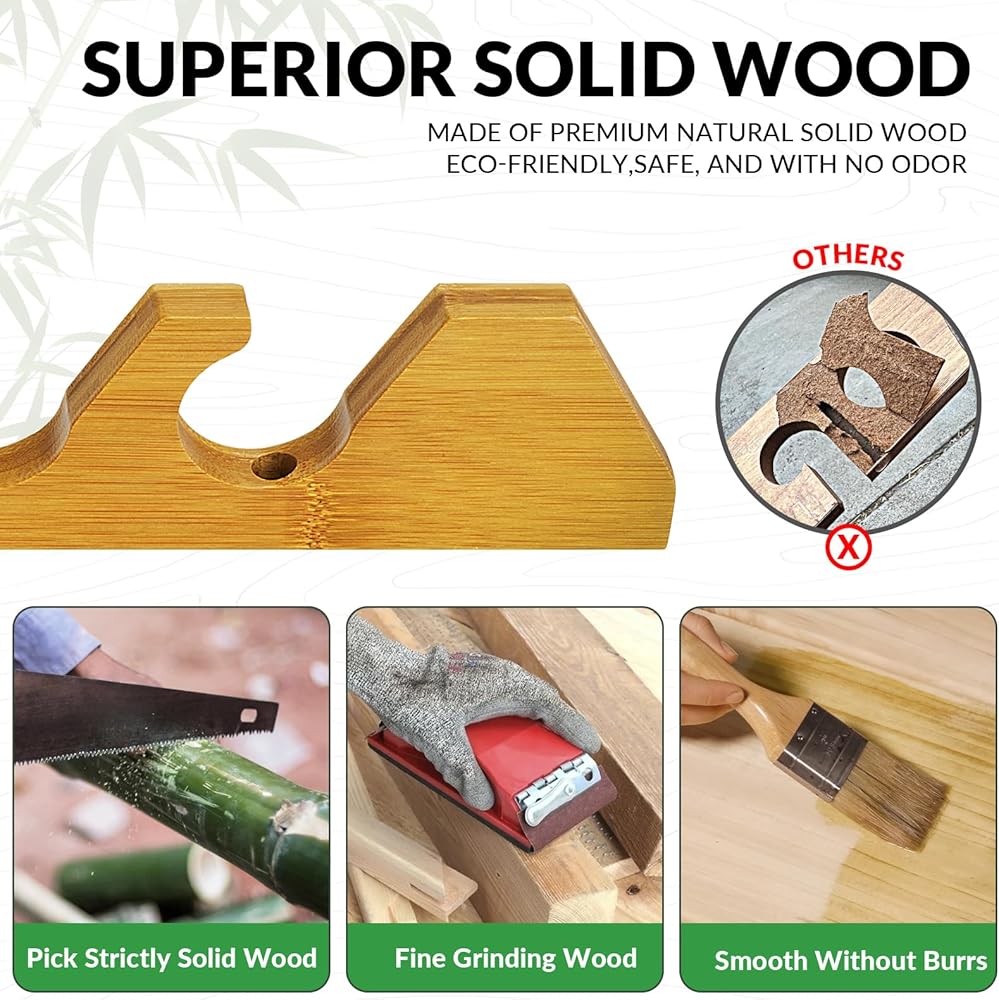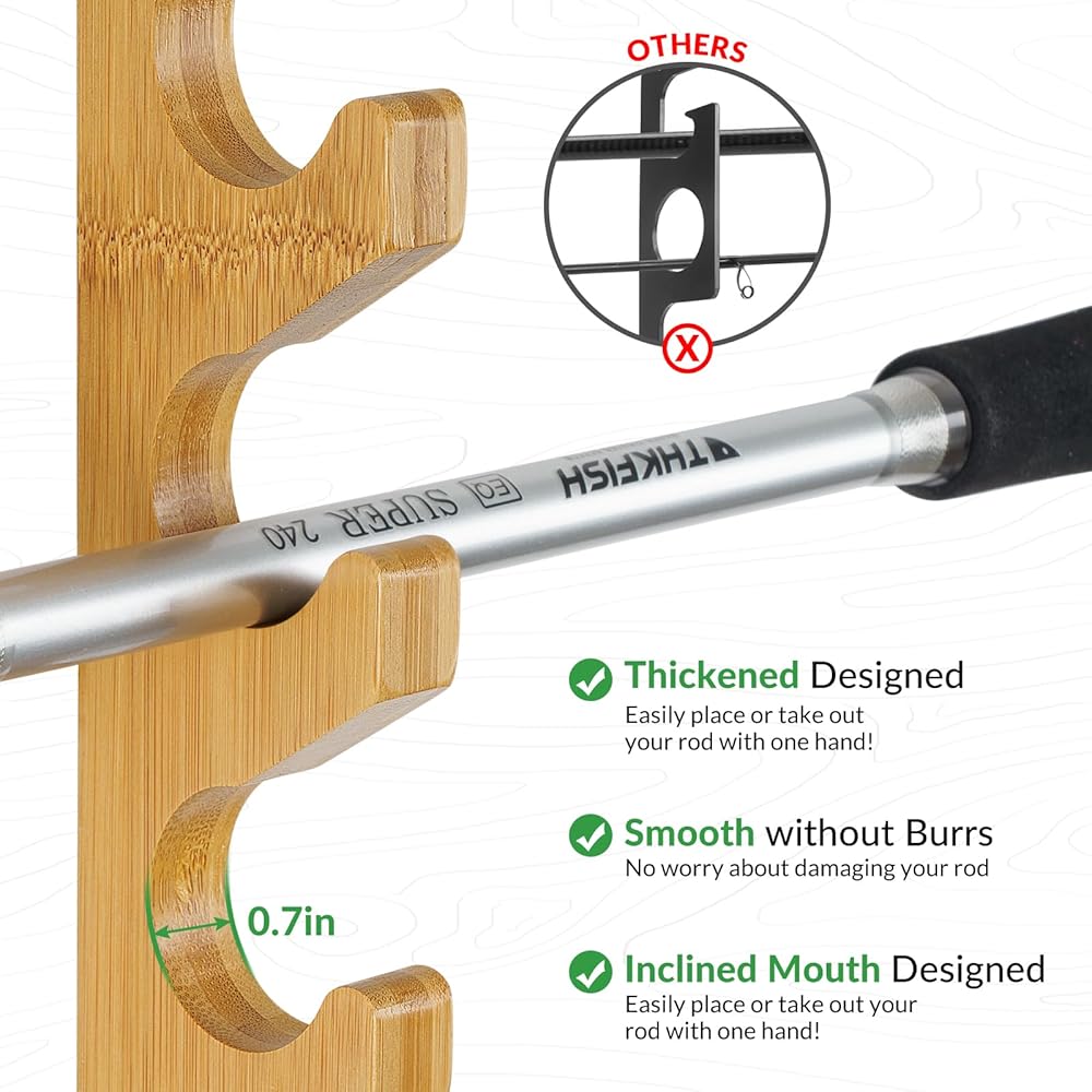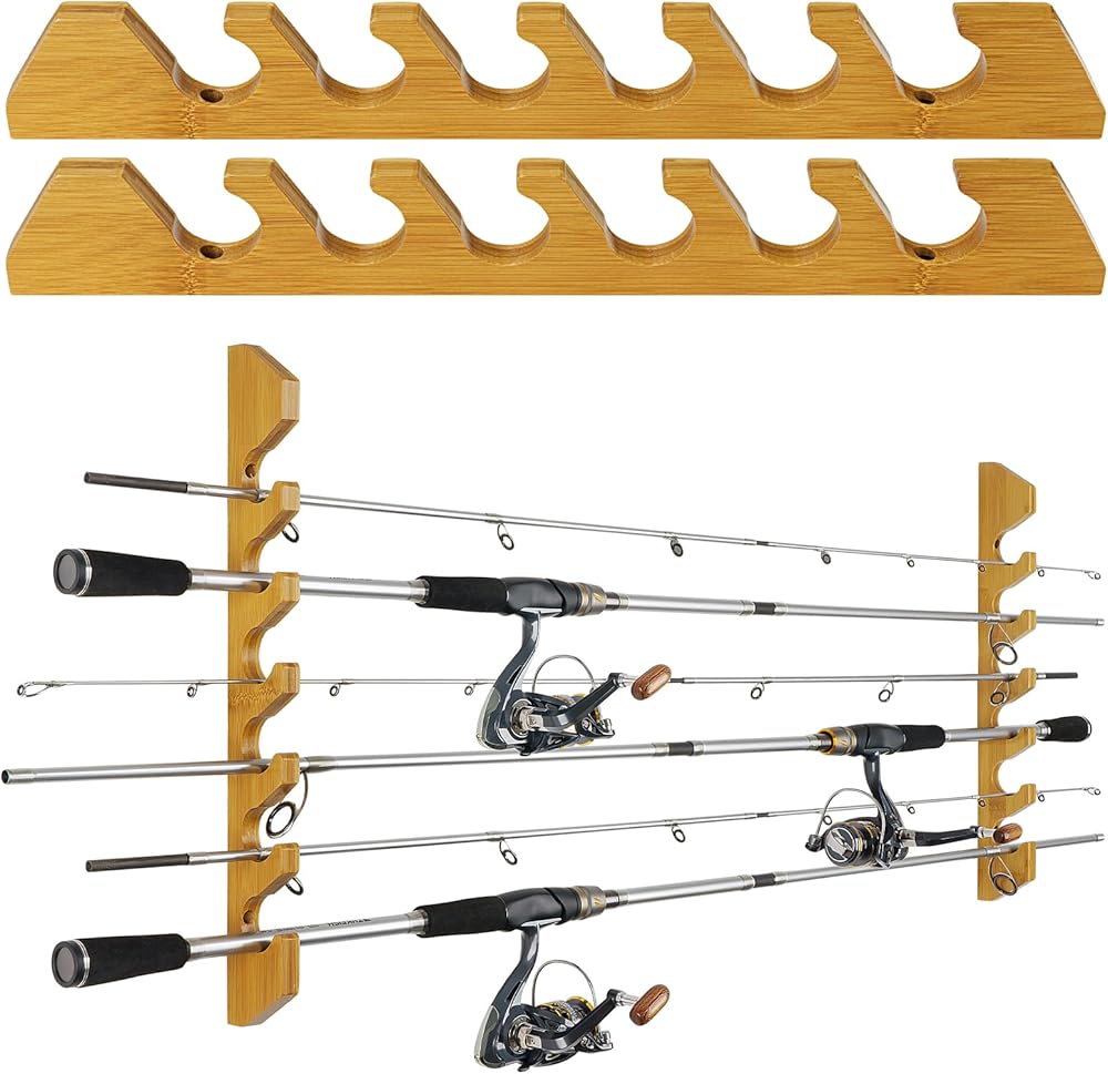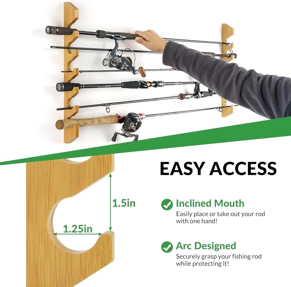 مصنوعة من الخشب الصلب الفاخر: مصنوعة من خشب الخيزران الطبيعي الصلب، تعمل حوامل عصا الصيد الخاصة بنا على حل أكبر مخاوف الصيادين - تخزين قضبان الصيد الخاصة بك بأمان ومريح ومنظم وخالي من التلف! السطح الخشبي مصقول ومطلي بدقة لضمان تخزين قضبان الصيد بثبات على رف صنارة الصيد؛ تضيف حبيبات الخشب الطبيعية تأثيرًا زخرفيًا إلى الغرفة، كما أن رف صنارة الصيد الأنيق والبسيط هو التجسيد المثالي لتركيب صنارة الصيد في المنزل.