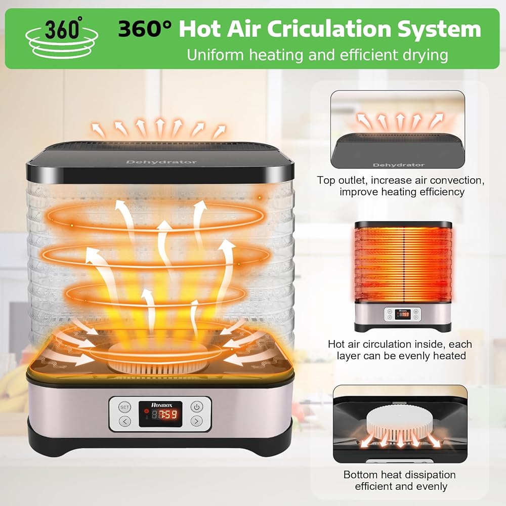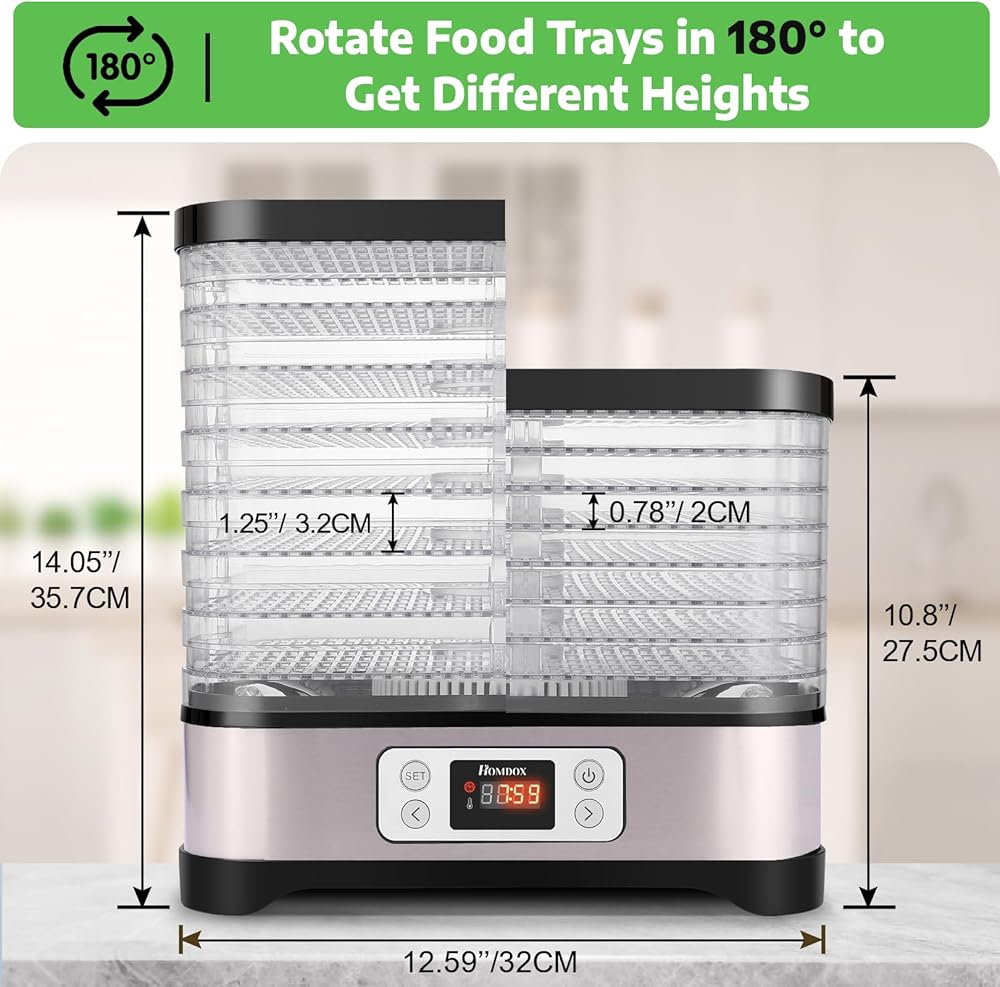 • وجبات خفيفة مغذية - مناسبة لتجفيف الأعشاب وشاي الزهور والخضروات وصنع المقدد ولفائف الفاكهة والوجبات الخفيفة للحيوانات الأليفة. استمتع بالوجبات الخفيفة الطبيعية النقية اللذيذة والمغذية. دعم Homdox: يرجى الاتصال بنا للحصول على بديل مجاني إذا استلمت صواني مكسورة!