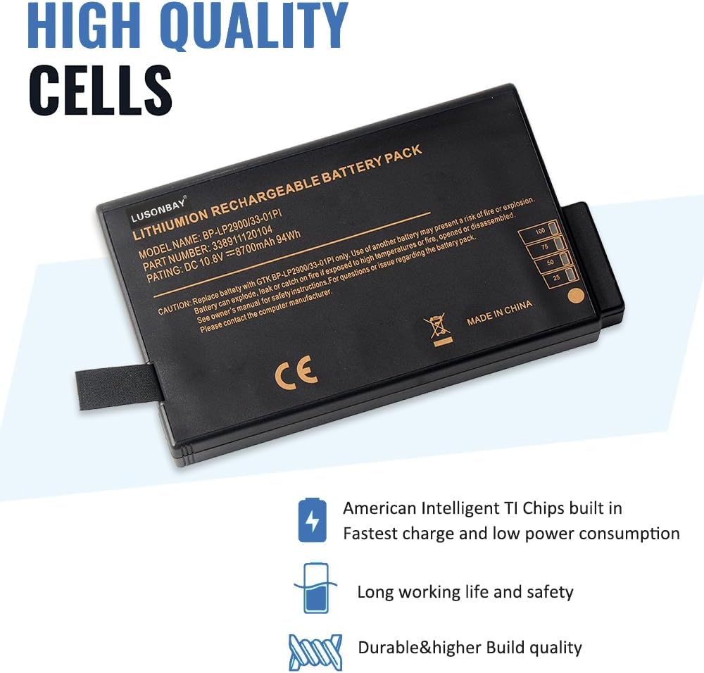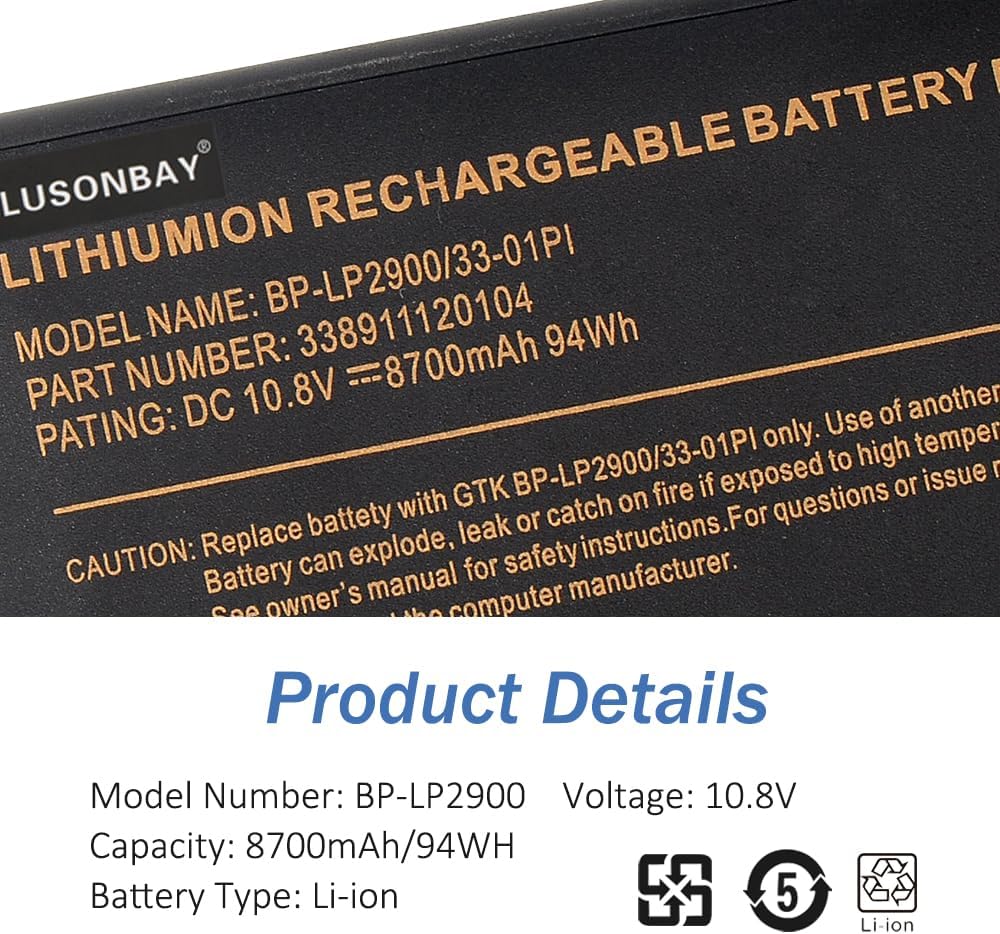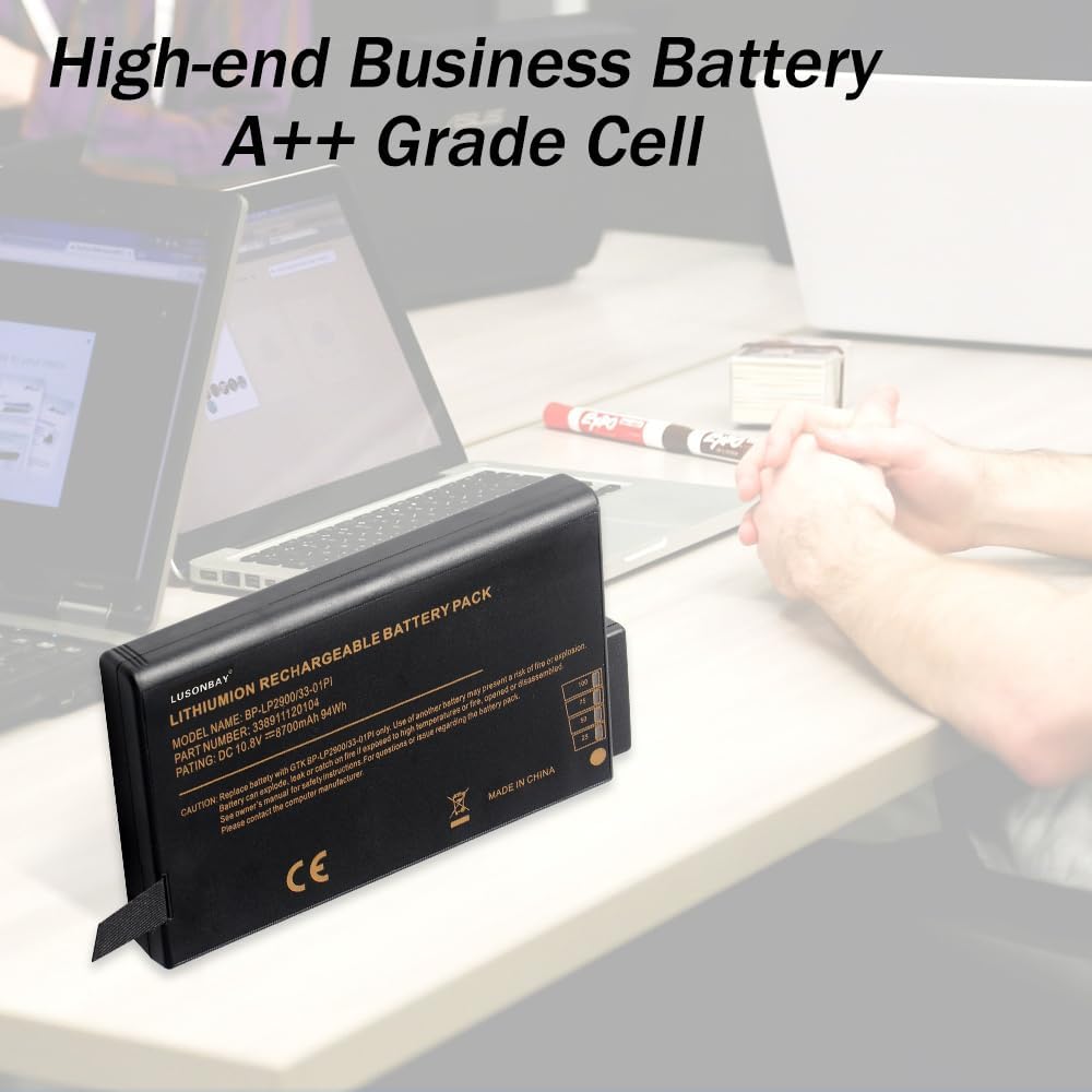 ︎︎ Greetings from the LUASONBAY Laptop Battery store︎︎. We are a professional manufacturer in the field of power tool batteries, laptop batteries, and chargers. We have our own factory, which provides high quality, competitive cost, and superior performance batteries and the best service to customers, it's our pleasure to service you.Specification:Capacity: 8700mAh/94Wh, Voltage:10.8V Battery Type: Li-ion, Condition:100% Brand New, Cell: Grade "A++" Cell.Warranty: 2 YearsReplace Part Number:BP3S3P2900(P), 441841700004, BP3S3P2900, 441814400099, BP3S3P2600(S), 441814400049Compatible With the Laptop Model:For Getac B300 B300X Rugged Notebook Why Choose Us? Very easy to install. Offer stronger lasting time. Good performance A++ cells. Multiple protection prevents damage to the device. Professional technical team, quick response within 24 hrs. Replace a new replacement within 2 Years if quality problem. Professional tech teams production plants, and different types of batteries are available.Something needs to be attention:To extend the battery life, please charge and discharge the battery at least once a month.Do not expose the battery to hot, humid air.Please feel free to contact us if you have any confusion or search for another type of battery.