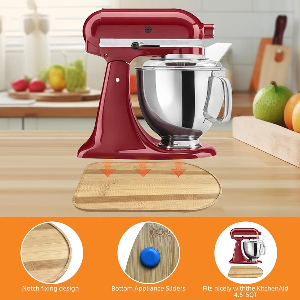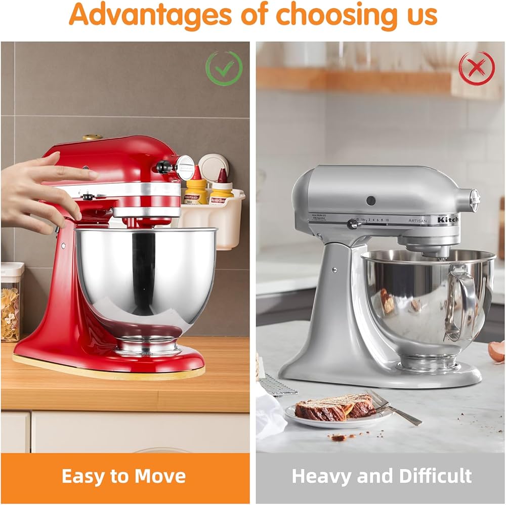 • Easy to Move: Put the mixer on the bamboo mixer slider, you can easily and smoothly move the mixer to the position you want on the kitchen countertop, saving time and energy, allowing you to access and store the equipment more easily than ever before.