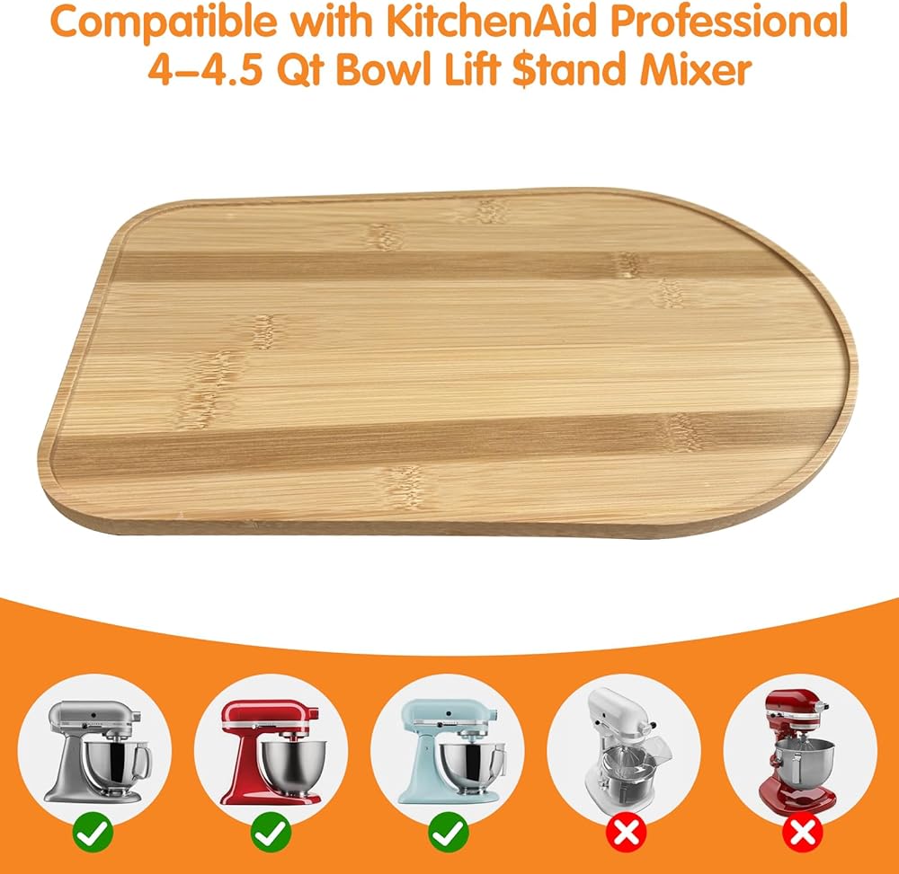 حصيرة منزلق خلاط من الخيزران لخلاط حامل كيتشن إيد 4.5-5 كيو تي، حصيرة منزلق لأجهزة المطبخ، صينية متحركة لجهاز الخلاط متوافقة مع مساعد المطبخ، لوح منزلق لخلاط سطح المطبخ