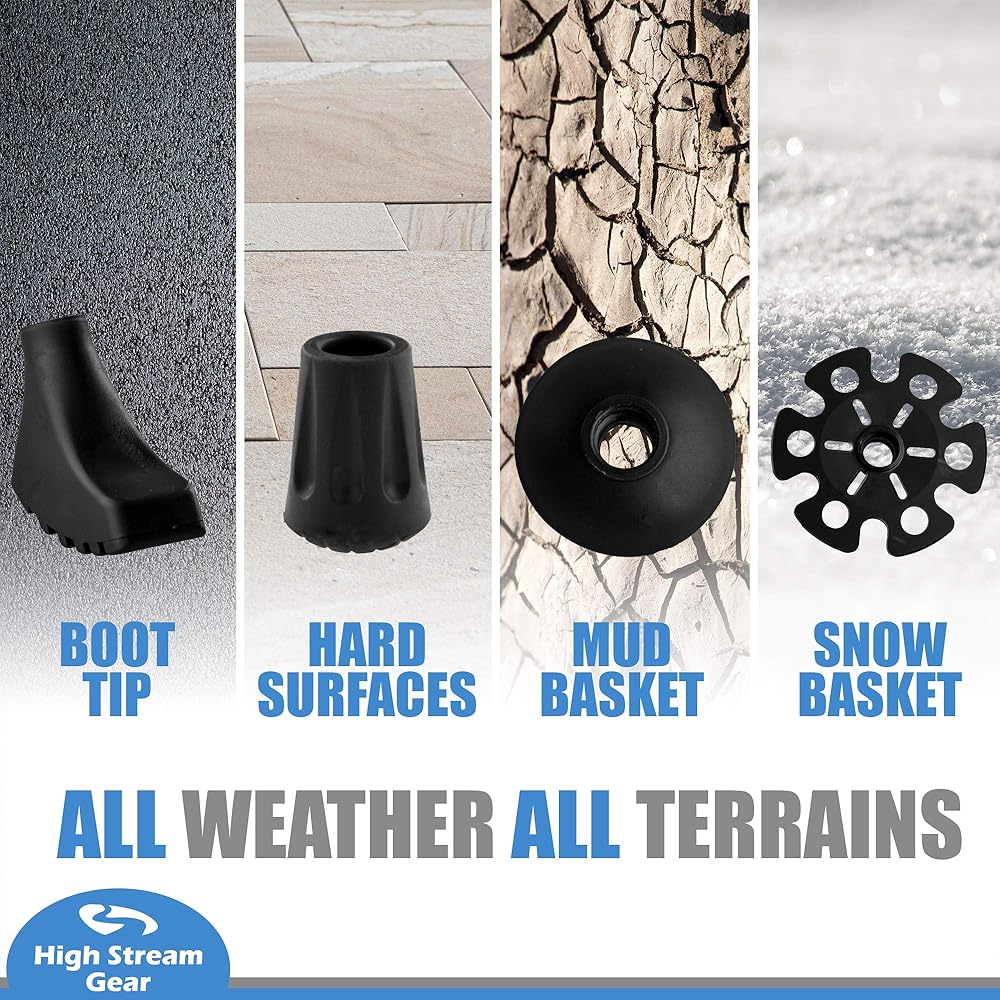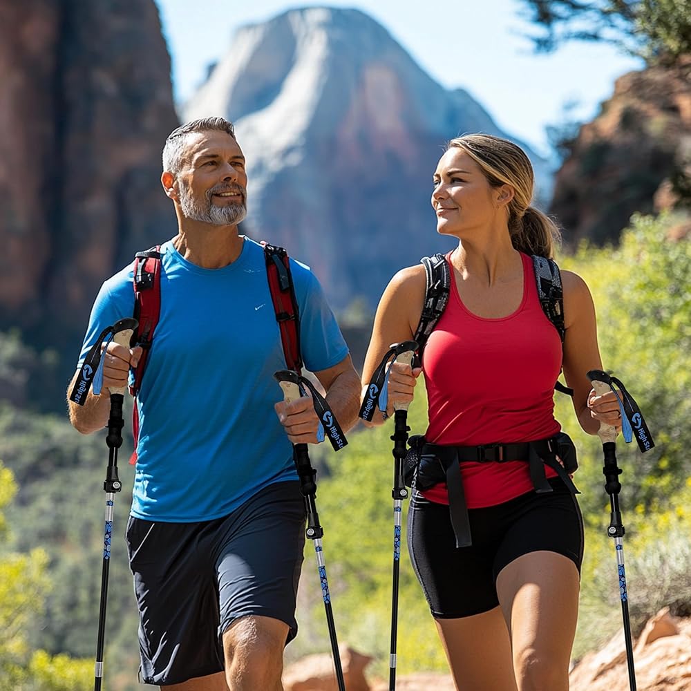 تحافظ على يديك خالية من البثور - توفر لك عصي المشي لمسافات طويلة القابلة للتعديل هذه والمقابض المصممة هندسيًا قبضة قوية ومريحة. ستبقي المقابض يديك جافة عندما تكون نشطًا للغاية.