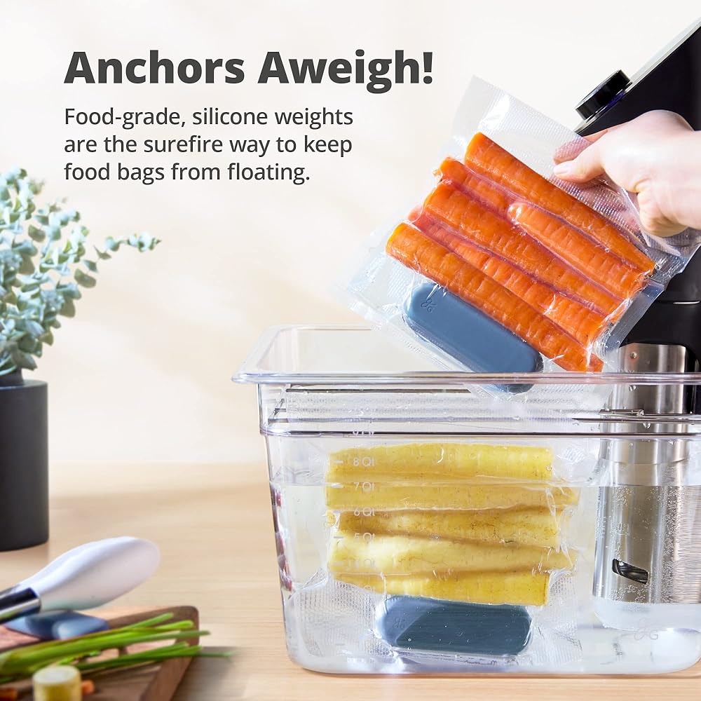 ملحقات Super Sous Vide: لا يكتمل إعداد Sous Vide بدون أوزان Sous Vide! للحصول على سيناريو غرق الأكياس الأكثر روعة، قم بوضع أحد هذه الأحواض الرائعة مع طعامك ولا تقلق أبدًا بشأن الطهي غير المتساوي مرة أخرى. ملاحظة: الفيديو الصوتي والحاوية غير متضمنتين.