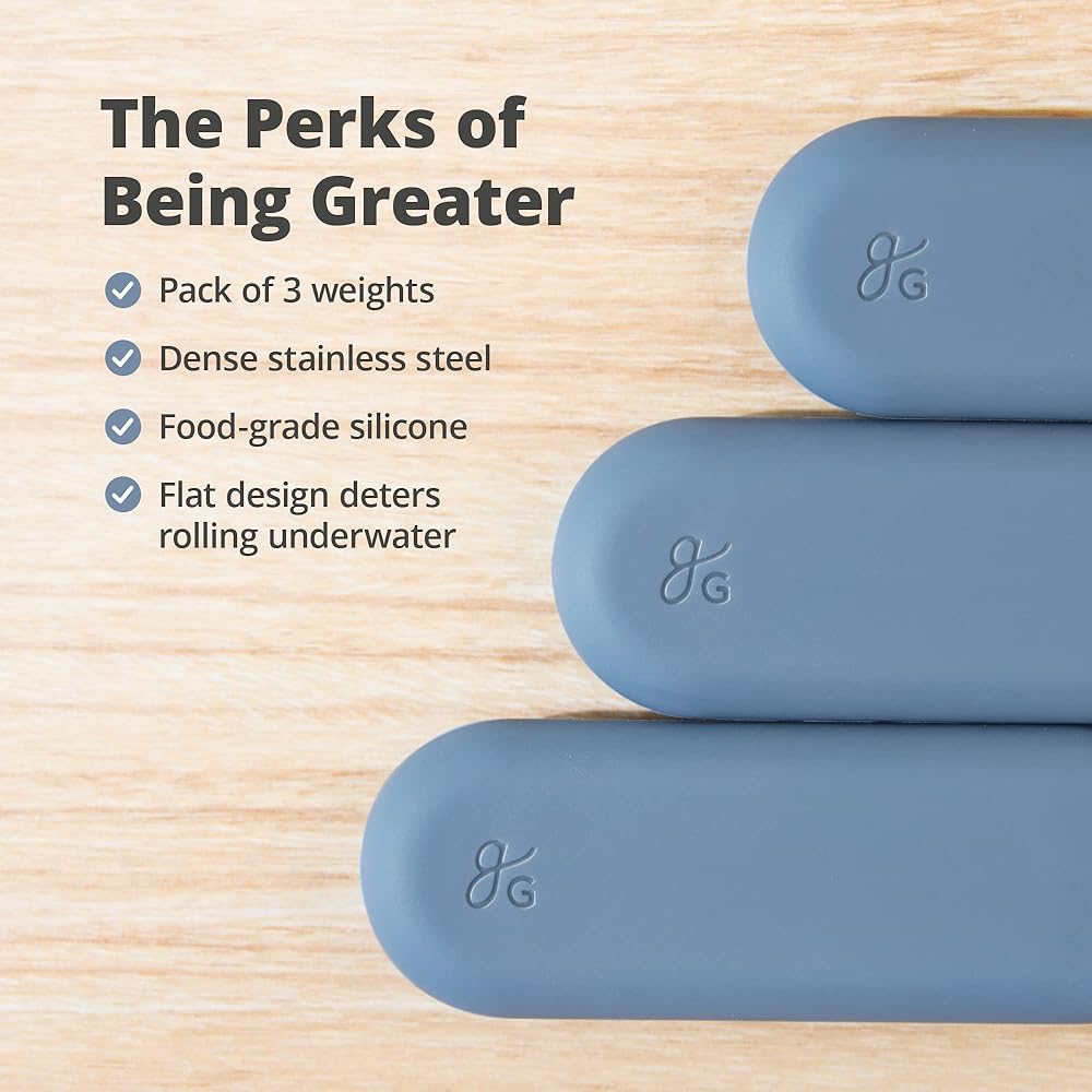 أوزان Sous Vide من Greater Goods مع غلاف من السيليكون ومركز من الفولاذ المقاوم للصدأ، الملحقات المثالية لإكمال مجموعة Sous Vide، مصممة في سانت لويس، عبوة من 3 قطع (أزرق حجري)