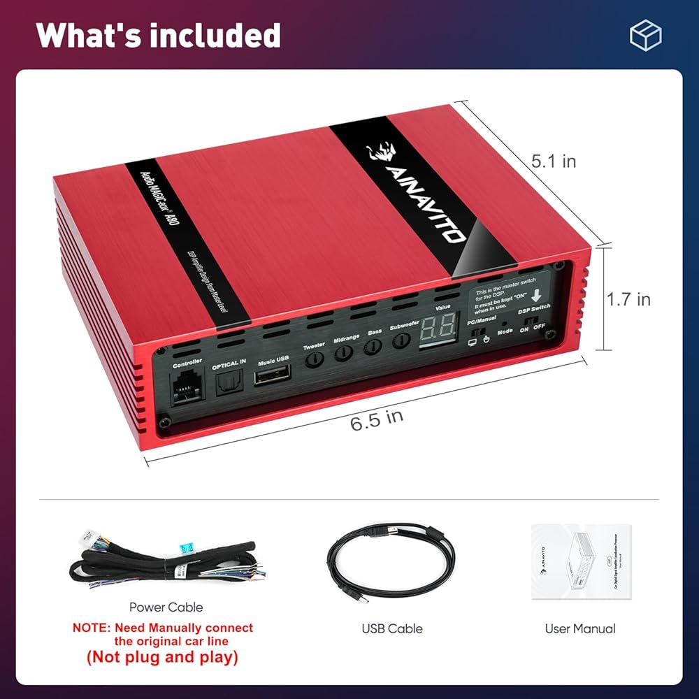 A80 DSP مضخم صوت السيارة معالج الإشارات الرقمية، إدخال قناتين، إخراج 8 قنوات، دليل الدعم/الكمبيوتر/التطبيق/جهاز التحكم/معادل السيارة USB لراديو السيارة Android (راديو غير OEM) التوصيل والتشغيل