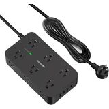 【شريط طاقة الكل في واحد】 - شريط الطاقة هذا بطول 10 أقدام مع 12 منفذ تيار متردد و4 منافذ USB (2 USB c) يعمل على تشغيل كل شيء على مكتبك. مع تقنية Smart IC المدمجة، يمكن لمنفذ USB 4 اكتشاف التيار المناسب وتقديمه تلقائيًا لأجهزتك. يوجد فتحتان للمفاتيح في الخلف مما يسمح لك بتركيب سلك التمديد هذا على الحائط أو الأثاث بسهولة. يتناسب القابس المسطح بزاوية 45 درجة بشكل مثالي في المساحات الضيقة مثل خلف رف الكتب أو المنضدة ولا يغطي الوعاء السفلي لمنفذ مزدوج