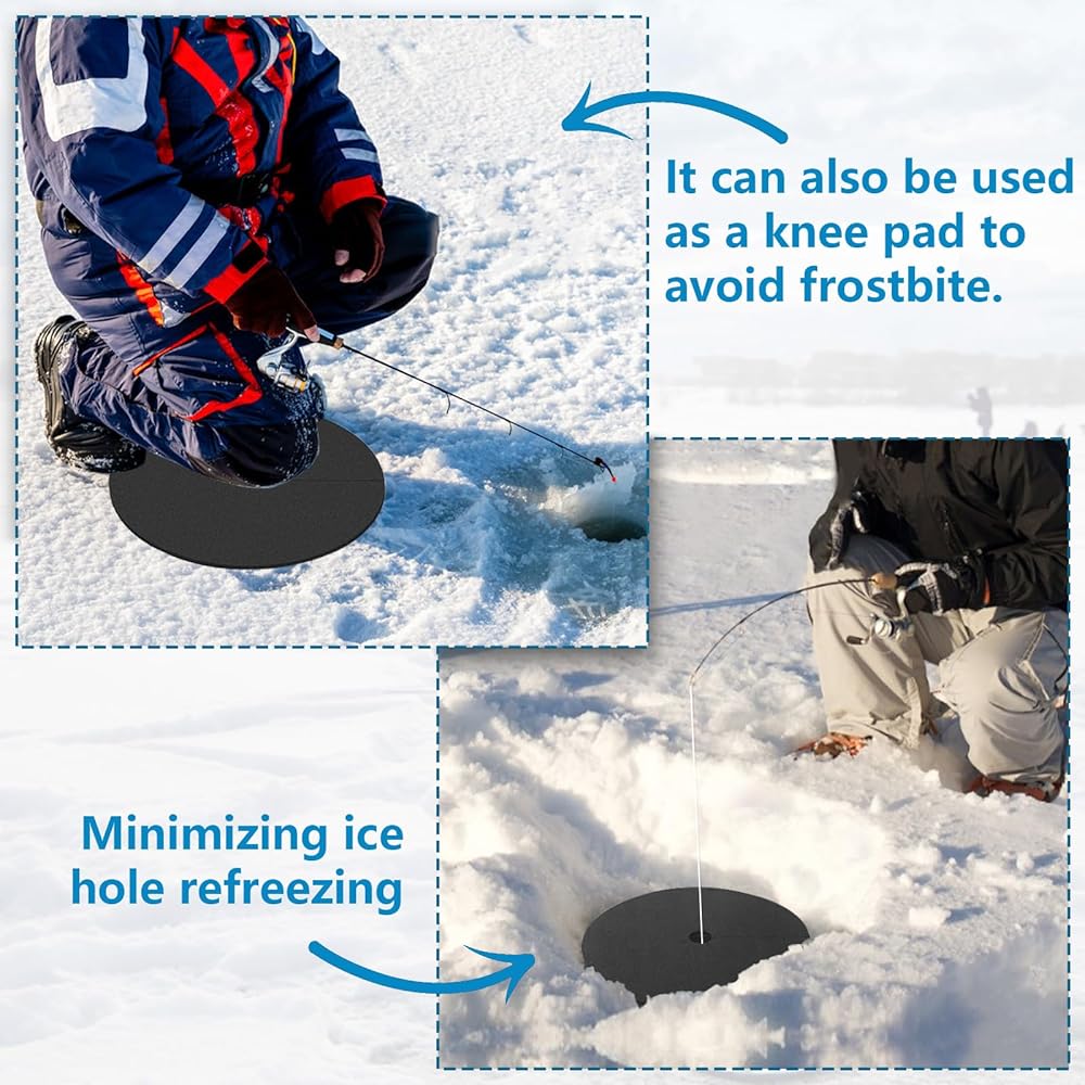 【مادة قوية】-- أغطية غطاء فتحة الأمان لصيد الأسماك على الجليد مصنوعة من إسفنج EVA عالي الجودة، مما يضمن توازنًا ممتازًا بين المتانة والمرونة. يمكنها تحمل حتى أقسى الظروف الجوية، مما يجعلها مناسبة لأنشطة الصيد على الجليد