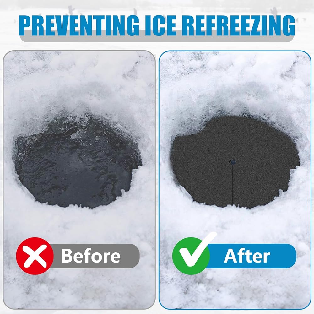 【سهل الاستخدام】-- تم تصميم الغطاء العازل لفتحة الصيد الجليدية في الهواء الطلق لمنع ثقب الصيد الخاص بك من التجمد بسرعة ويتميز بعملية تركيب سهلة تتضمن ببساطة ربط خط الصيد ووضع الغطاء فوق فتحة الجليد المحفورة، مما يجعله سهل الاستخدام. أداة يجب اقتناؤها لعشاق الصيد على الجليد