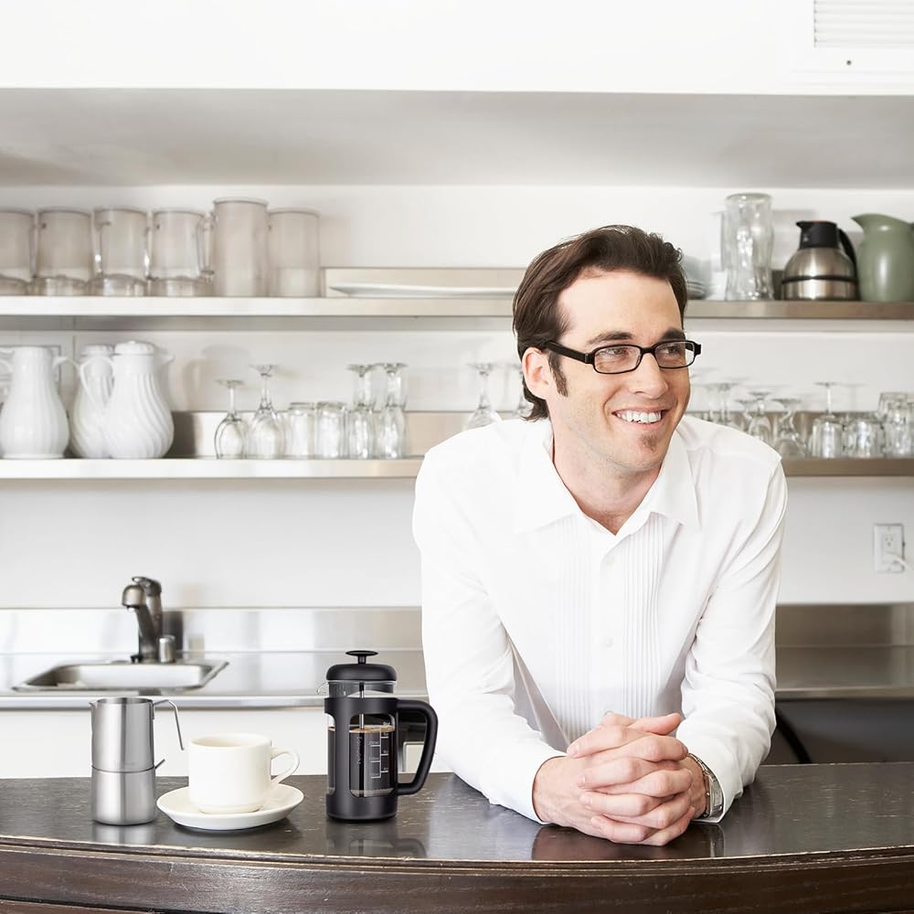 ماكينة صنع القهوة والشاي الفرنسية من Easyworkz بسعة 12 أونصة مع زجاج بوروسيليكات، ومقبض ناعم
