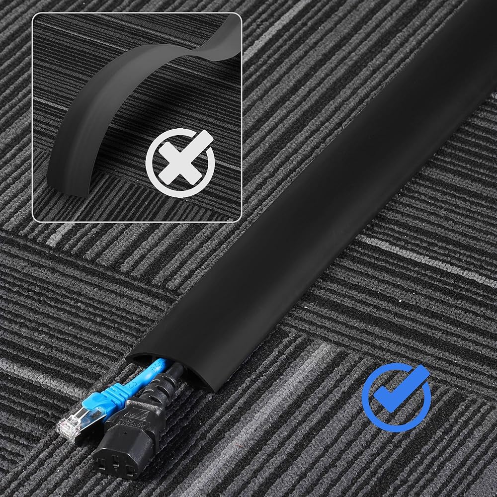 • سهولة التركيب: تأتي أرضية غطاء السلك في عبوة ملفوفة، ولكن نظرًا لبنيتها شديدة التحمل، فإنها يتم وضعها بشكل مسطح بسرعة وبشكل تلقائي. ما عليك سوى وضع الأسلاك بالداخل، وبذلك يكتمل التثبيت. يتضمن شريطًا إضافيًا لراحتك إذا كنت ترغب في تعزيز إدارة سلك الأرضية
