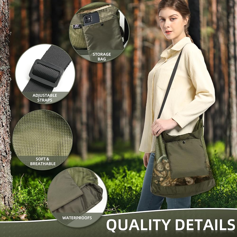 تساعد على إعادة نمو الفطر - فتحة حقيبة العلف الخاصة بنا لسهولة الوصول إليها، مصنوعة من شبكة ناعمة وجيدة التهوية، مما يسمح للجراثيم بالسقوط من الفطر وتعزيز إعادة النمو، مما يساعد على الحفاظ على النظام البيئي، مما يجعلها الإضافة المثالية لأي مغامرة بحث عن الطعام.