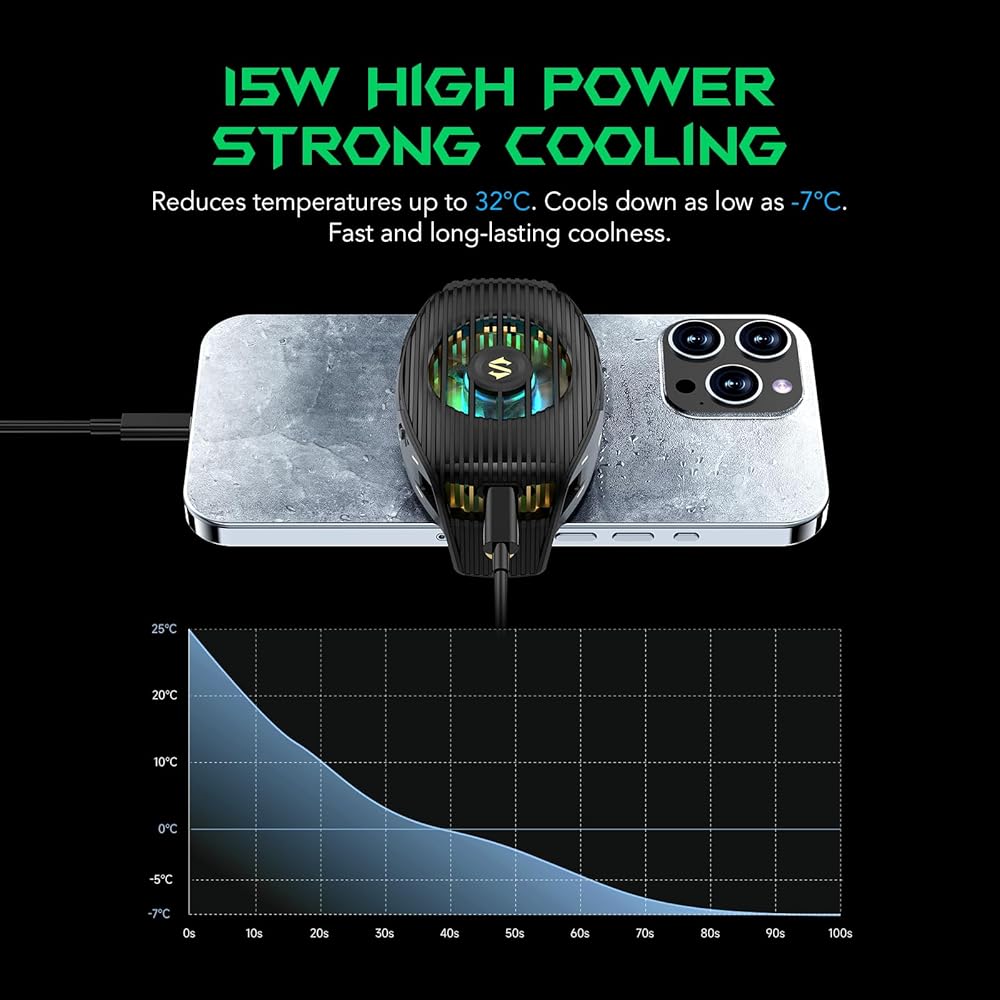 • 【Smart Control】The magnetic phone cooler is with NTC-Dual protection mechanism, it will monitor the inner temperature and auto shut down when the temperature is>65℃ or <-10℃. Effectively protects the phone's performance. Shark Arsenal app to manage fan speeds, customize lighting, and more. Download the app on iOS or Android. (Please refer to the instructions for details.)