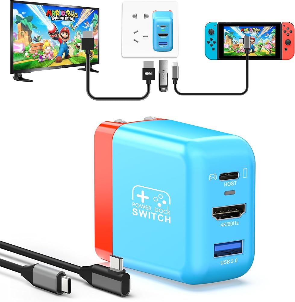 【محول قاعدة توصيل محمول بقدرة 30 وات】تم تصميم مجموعة قاعدة توصيل التلفزيون المحمولة من RREAKA لجهاز نينتندو سويتش ونموذج نينتندو سويتش OLED. بديل مثالي لقاعدة التبديل الرسمية، يدعم تلفزيون 4K@60 هرتز وإخراج 1080P HD. يدعم منفذ USB-C الشحن السريع، ويستغرق شحن وحدة التحكم Switch بالكامل 2.5 ساعة فقط. يناسب محول شاحن Nintendo Switch جميع أجهزة النوع C.