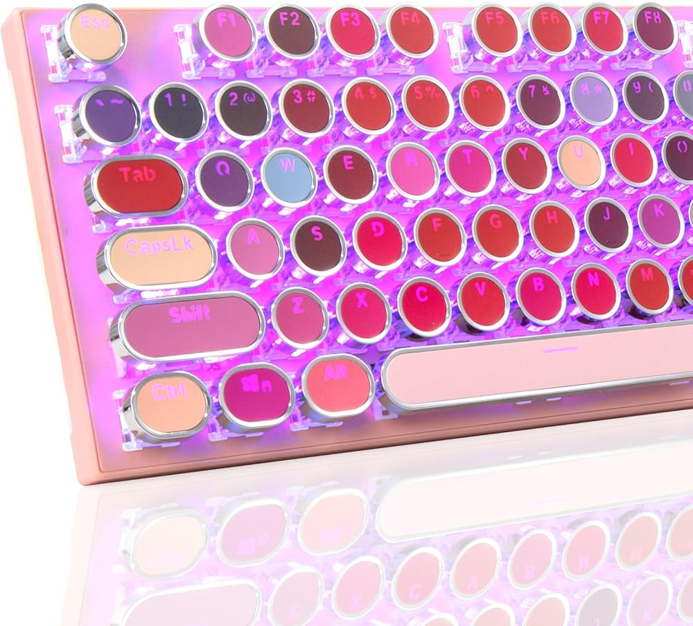 ❤ طراز عتيق ▶ أغطية مفاتيح مستديرة فريدة من نوعها بلون أحمر الشفاه مع تصميم أنيق على شكل مفتاح عائم في المظهر الجانبي يمنحك شعورًا بالحنين مع الجمالية القديمة الجذابة