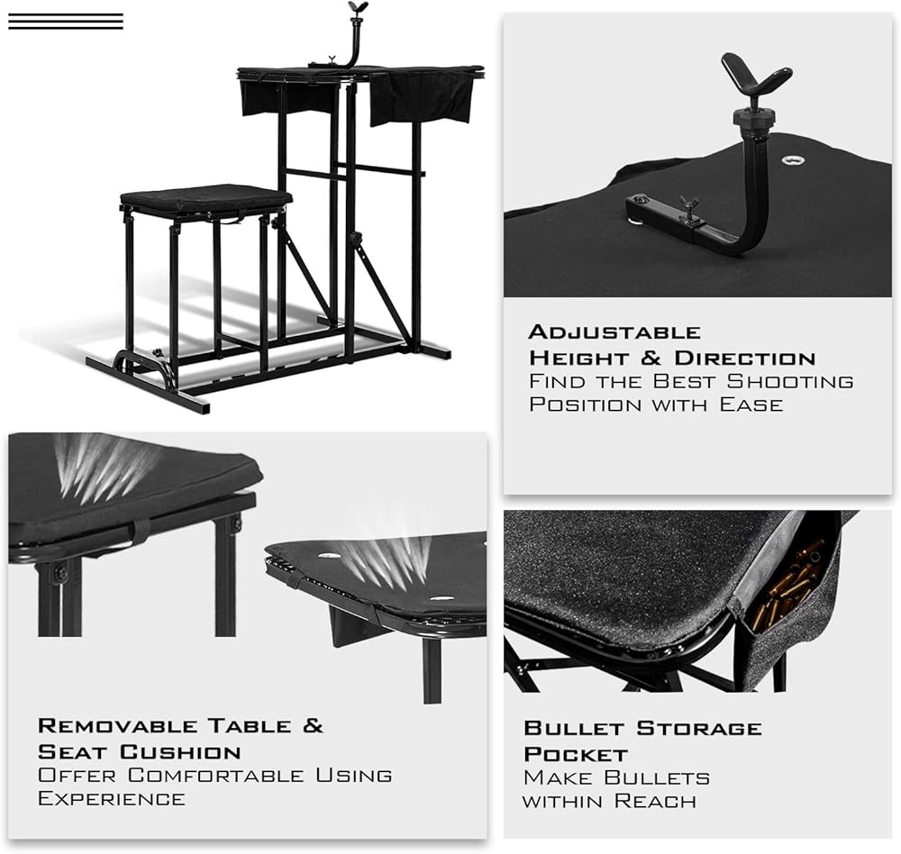 • 🦌【مجموعة طاولة الرماية متعددة الوظائف】عملية ومرنة، هذه الطاولة متعددة الأغراض مع مسند مسدس وكرسي مثالية للرماية والصيد والرؤية وغيرها من الممارسات المستهدفة.