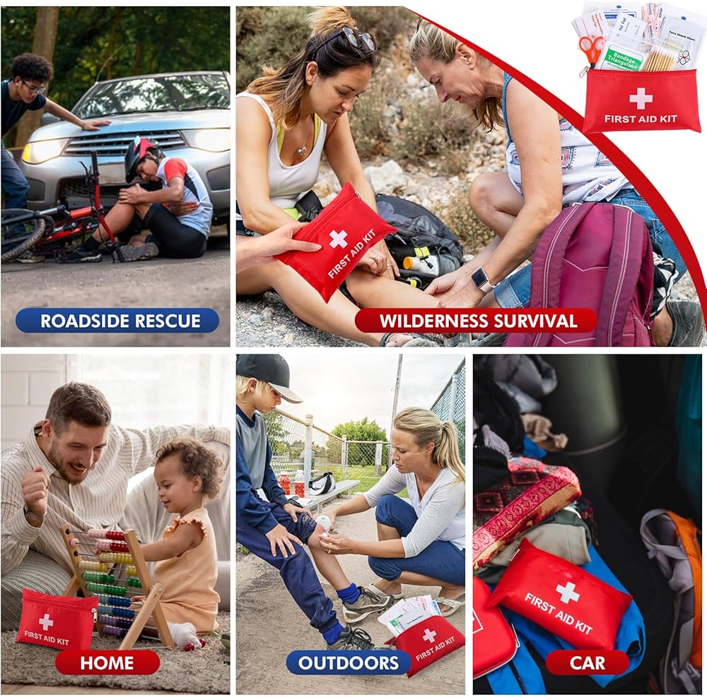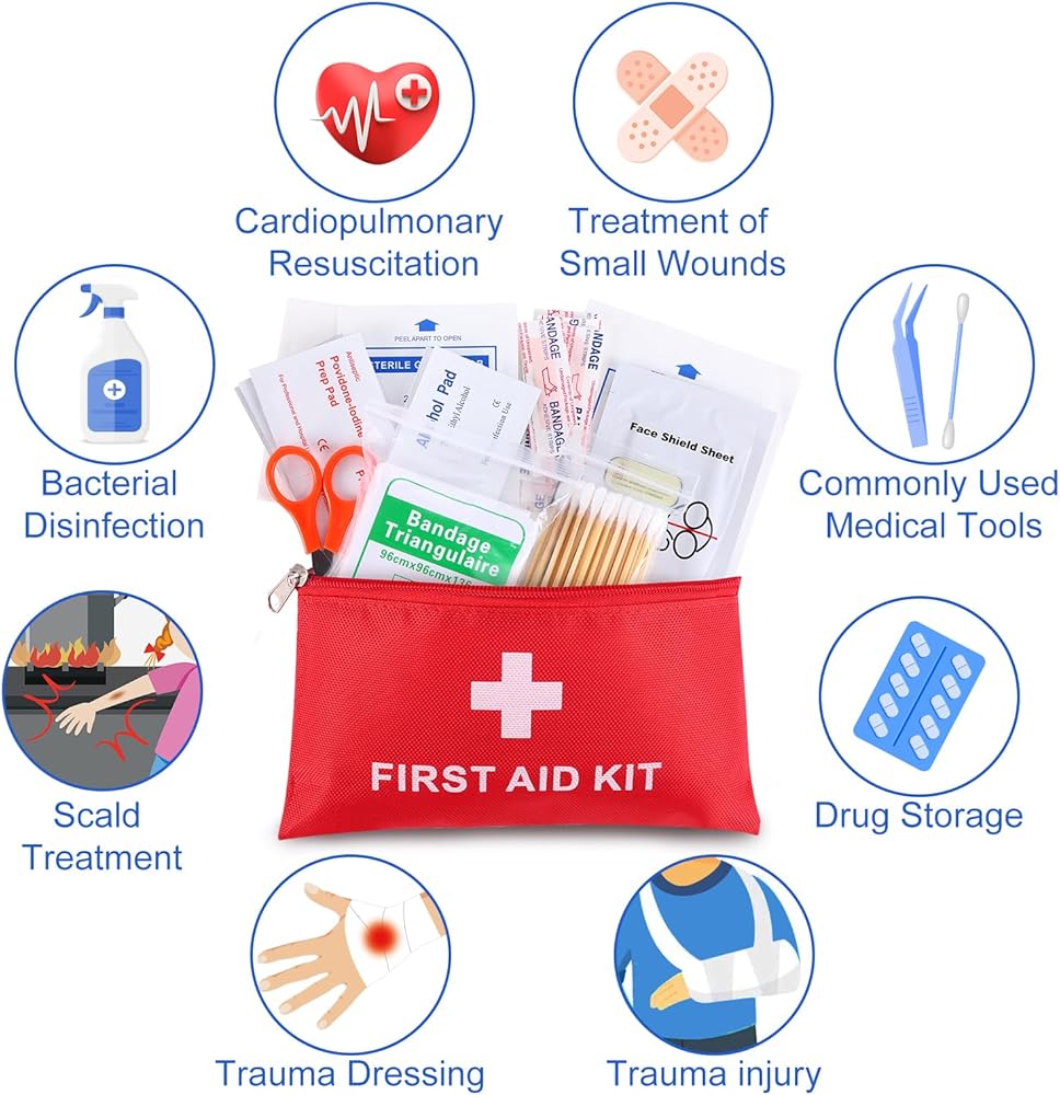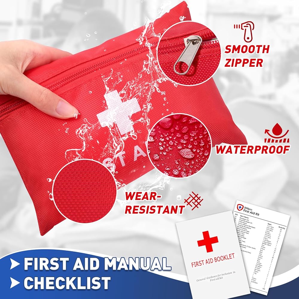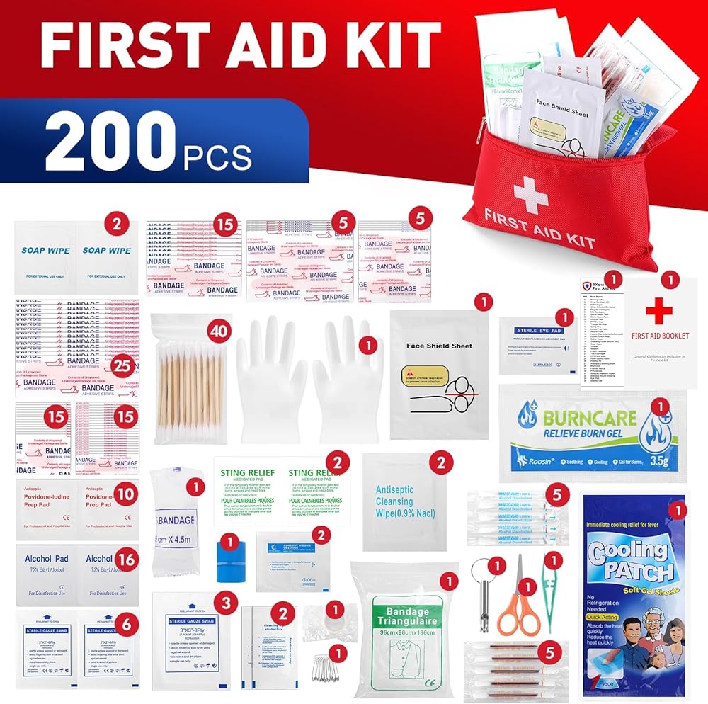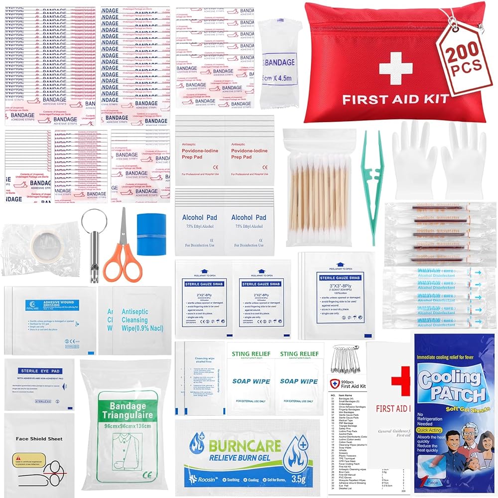 مجموعة الإسعافات الأولية الصغيرة، 200 قطعة من أدوات الإسعافات الأولية الصغيرة المقاومة للماء للسفر، مجموعة الإسعافات الأولية نظيفة وعلاج وحماية معظم الإصابات، مجموعة الإسعافات الأولية للمنزل والتخييم والمشي لمسافات طويلة ومستلزمات الإنقاذ في حالات الطوارئ