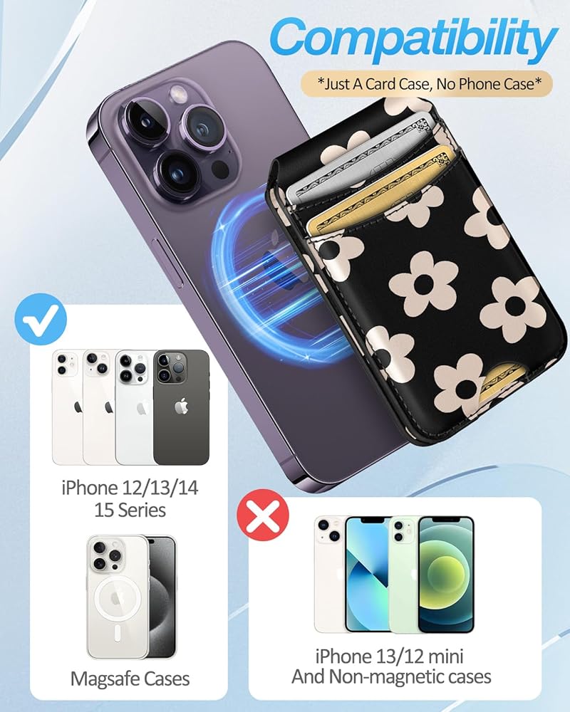 Compatible Models: Our for Magnetic wallet is compatible for iPhone 16/16 Pro/16 Pro Max/16 Plus,with iPhone 15/15 Pro/15 Pro Max/15 Plus,with iPhone 14/14 Pro/14 Pro Max/14 Plus,with iPhone 13 Pro Max/13 Pro/13,with iPhone 12 Pro Max/12 Pro/12,and all phones compatible with magsafe case.Please Note:this for Magnetic wallet is not suitable for phones and phone cases without for Magnetic function.