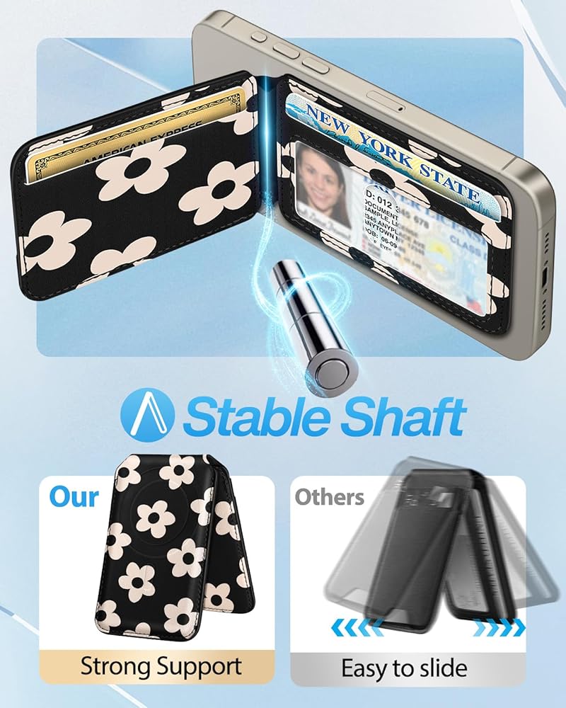 Stable Shaft:Aiming at the problem of stability of the for Magnetic wallet when using it as a stand,we have specially chosen high-quality materials to make the folding shaft.The shaft provides a strong support for the phone wallet,more stable than other for Magnetic wallet in the market.