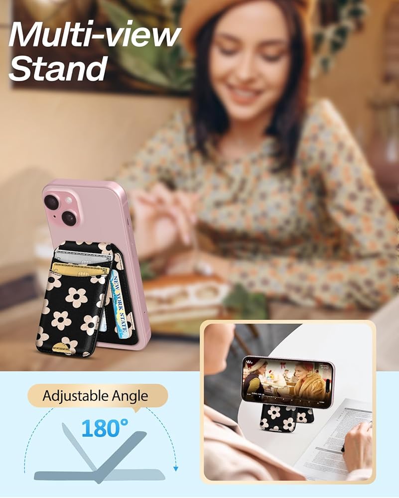 Multi-Angle Adjustment:When using your phone with this wallet, you can use it as a stand.You can adjust the for Magnetic wallet at any angle 180°.You can find the appropriate angle to watch movies,read books,and make a video call.