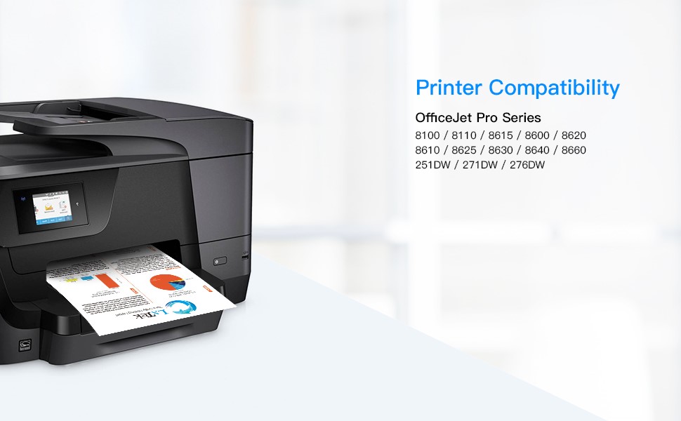 - 100% Compatible Printers: HP OfficeJet Pro 8610, 8600, 8620, 276dw, 8630, 251dw, 8100, 8615, 8625, 8640, 8660, 271dw, 8110 Printers.