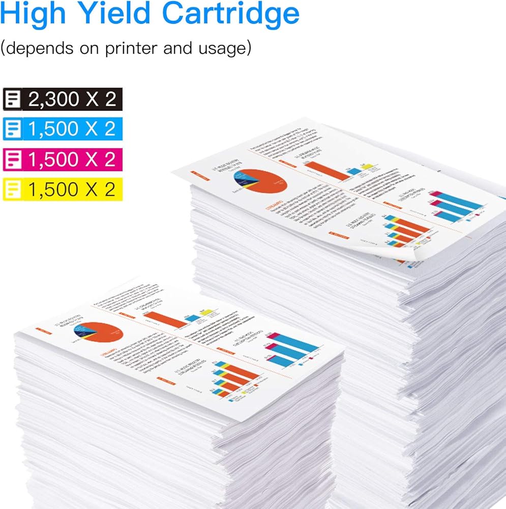 - Estimated Page Yield: Up to 2,300 pages per black cartridge and 1,500 pages per color cartridge at 5% coverage.