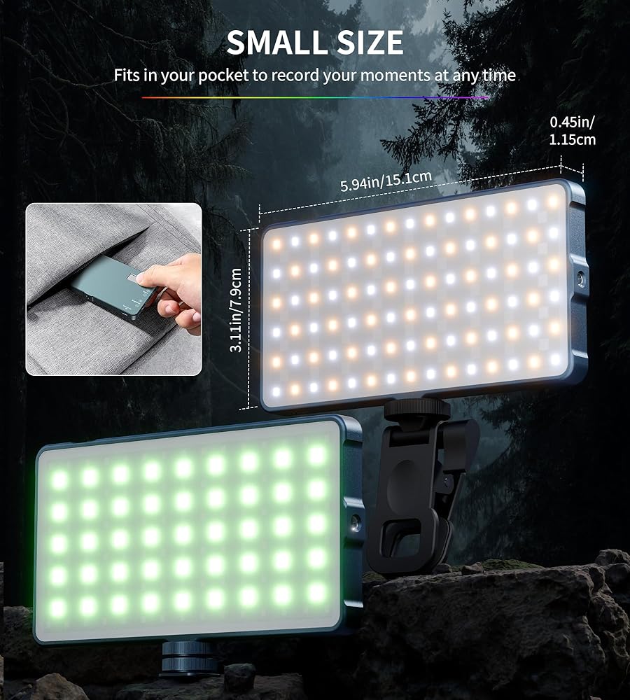 【ما تحصل عليه】مصباح سيلفي RGB * 1، حذاء معدني * 1، مشبك هاتف * 1، كابل USB-A إلى C * 1. خدمة عملاء لطيفة، لمدة 30 يومًا بعد تاريخ الشراء، احصل على ضمان استرداد الأموال لأي سبب من الأسباب. ضمان لمدة 12 شهرًا للمشكلات المتعلقة بالجودة.