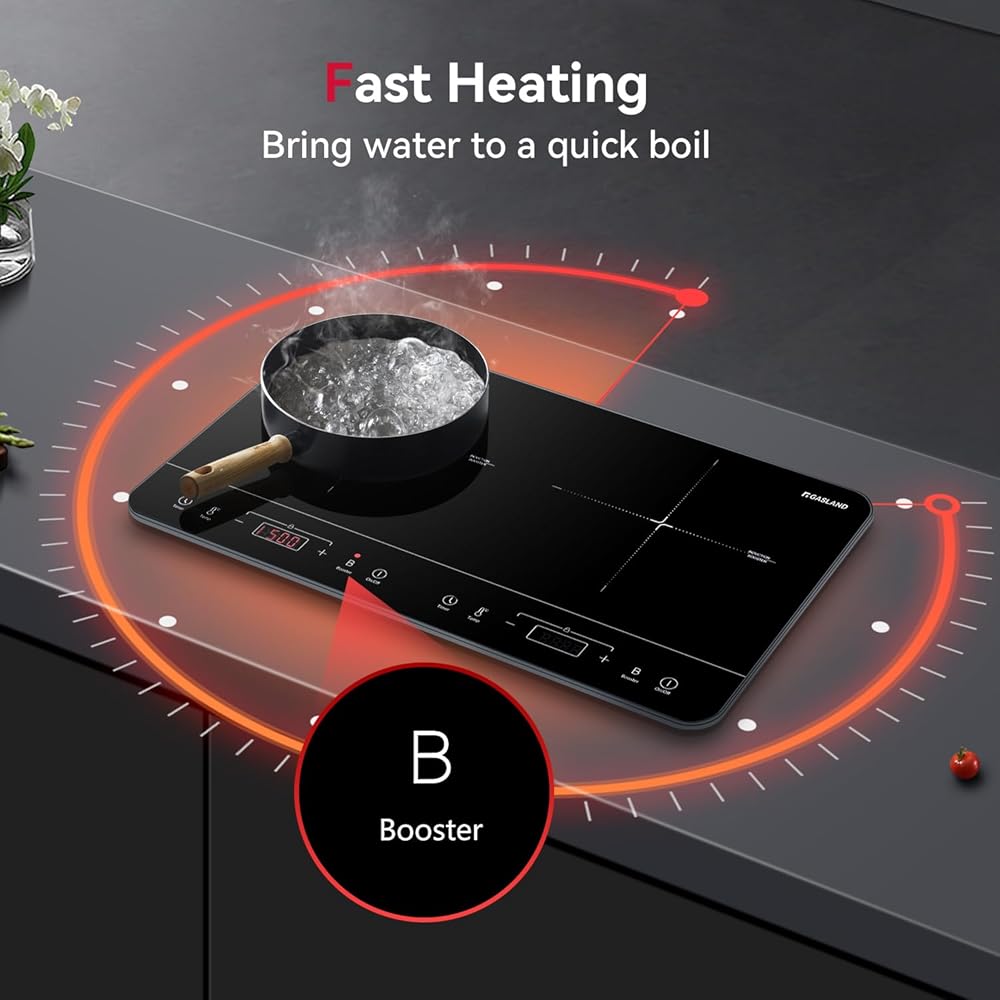 غازلاند موقد الحث المحمول 2 شعلات، 1800 واط موقد الحث المزدوج مع 10 درجة حرارة 7 إعدادات للطاقة، طباخ التعريفي المزدوج مع التحكم باللمس الاستشعار، قفل أمان الطفل ومؤقت