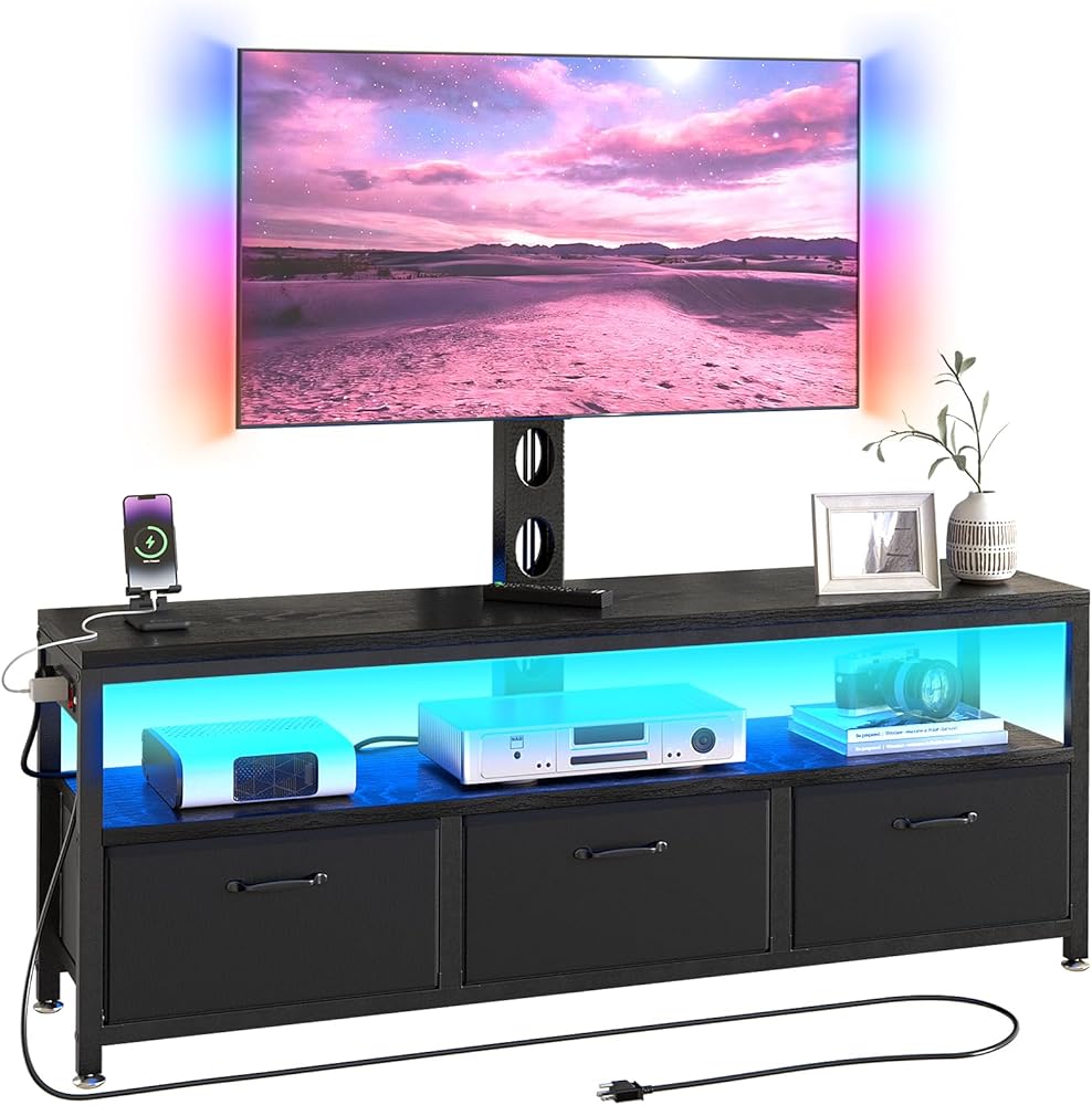【إمكانيات تخزين لا نهاية لها 】2 رفوف تخزين كبيرة مفتوحة و3 أدراج تخزين قابلة للإزالة للكتب أو وحدات التحكم بالألعاب أو أقراص DVD أو الزينة. يمكنك تنظيم غرفتك بشكل أكثر أناقة وراحة مع خزانة التلفزيون هذه.