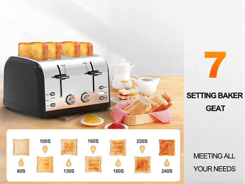 وظائف متعددة الاستخدامات: تتميز بوظائف الإلغاء وإذابة الجليد والخبز التي تتميز بمؤشرات LED، ويمكن اختيار مستويات التسخين السبعة للمحمصة بسهولة باستخدام زر الترس الدوار. قم بإعداد وجبة إفطار لذيذة حسب رغبة عائلتك بكل سهولة