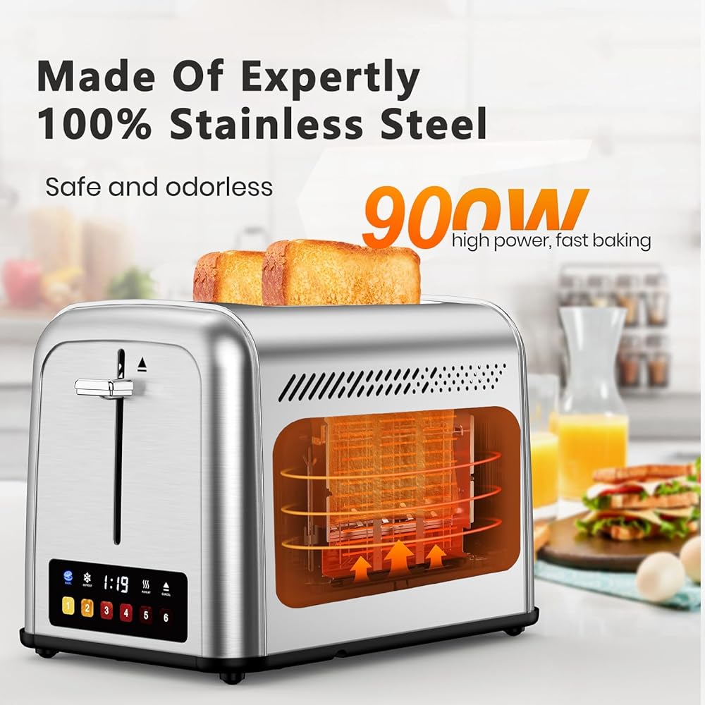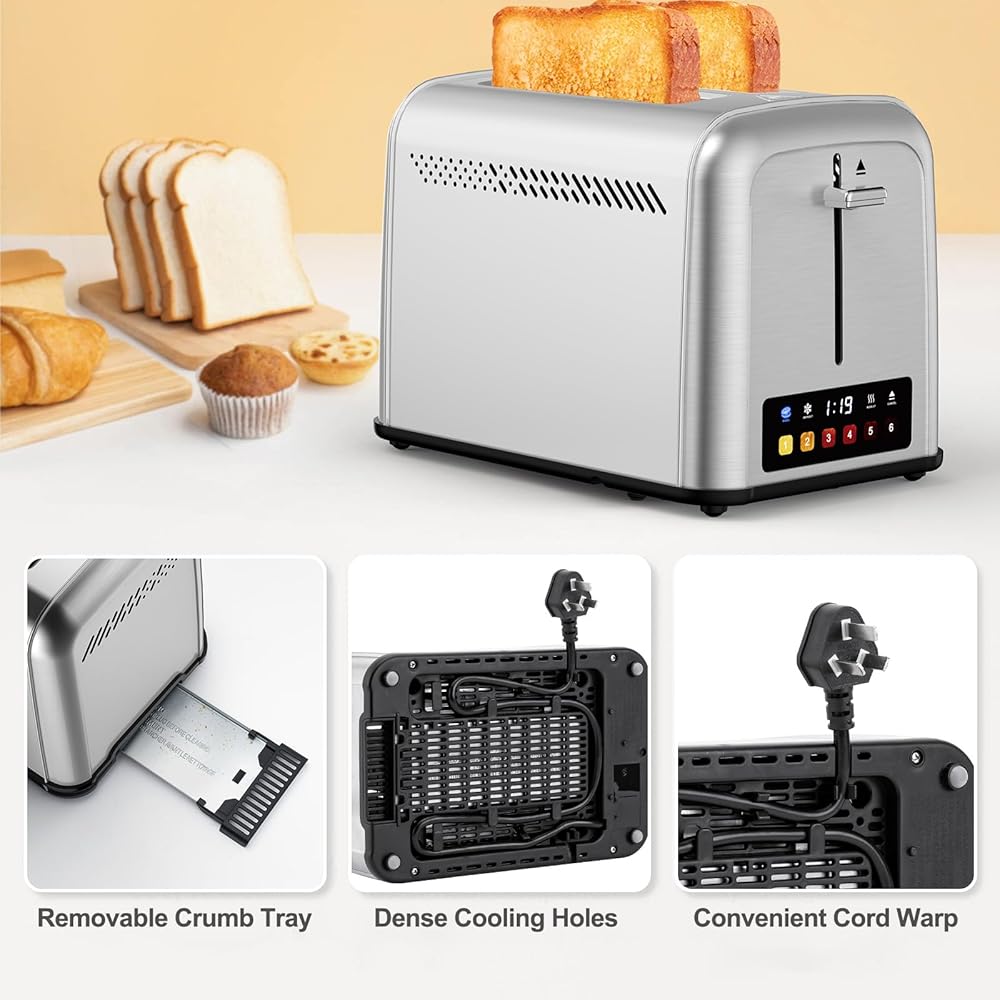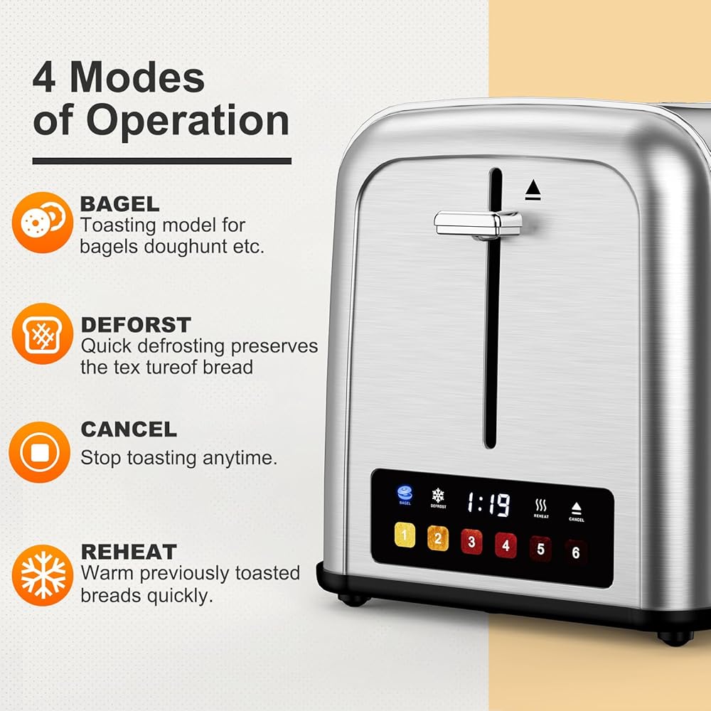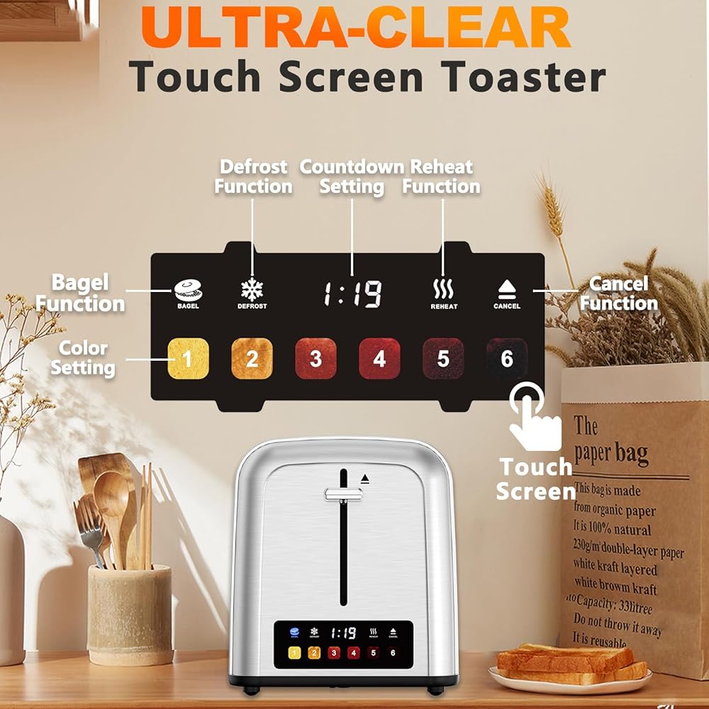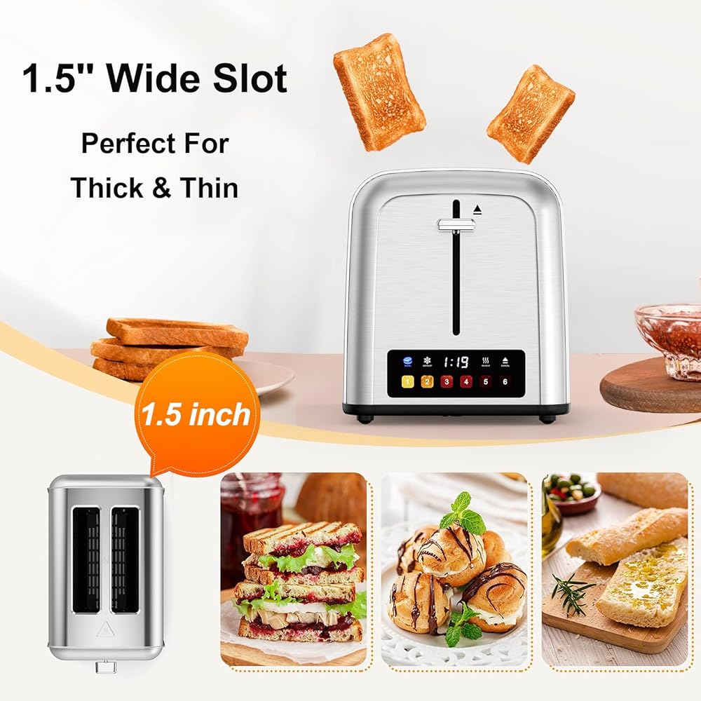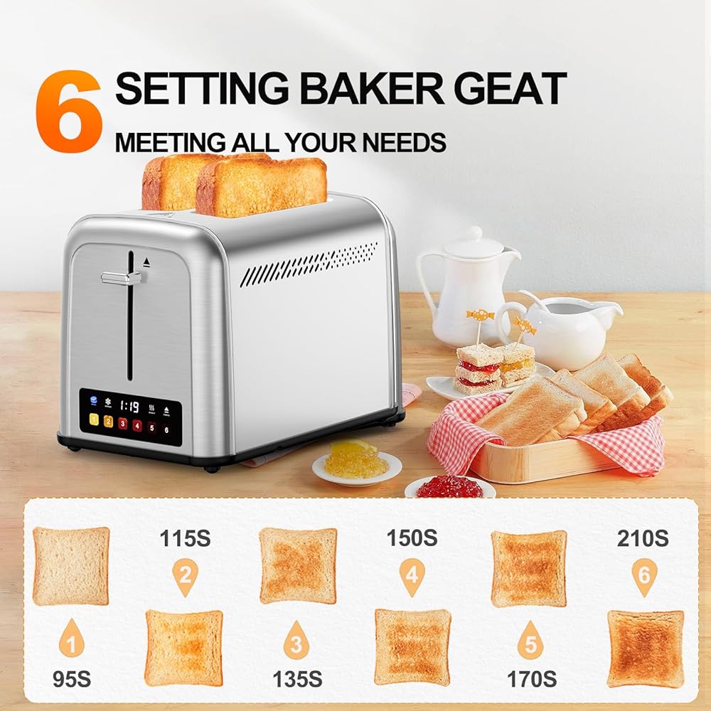 محمصة خبز تعمل باللمس مكونة من شريحتين من الفولاذ المقاوم للصدأ، أفضل محمصة خبز ذات شريحتين مع 6 إعدادات للظل، مثالية للفطائر والخبز والمزيد 238TC (فضي)